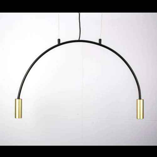 Enticing elegance follows the sleek slender silhouette. A Looper pendant with serious allure, this contemporary island pendant has two lights. With a short cylindrical shape and a weathered gold finish over cast aluminum, it fits right in with trending modern decor.