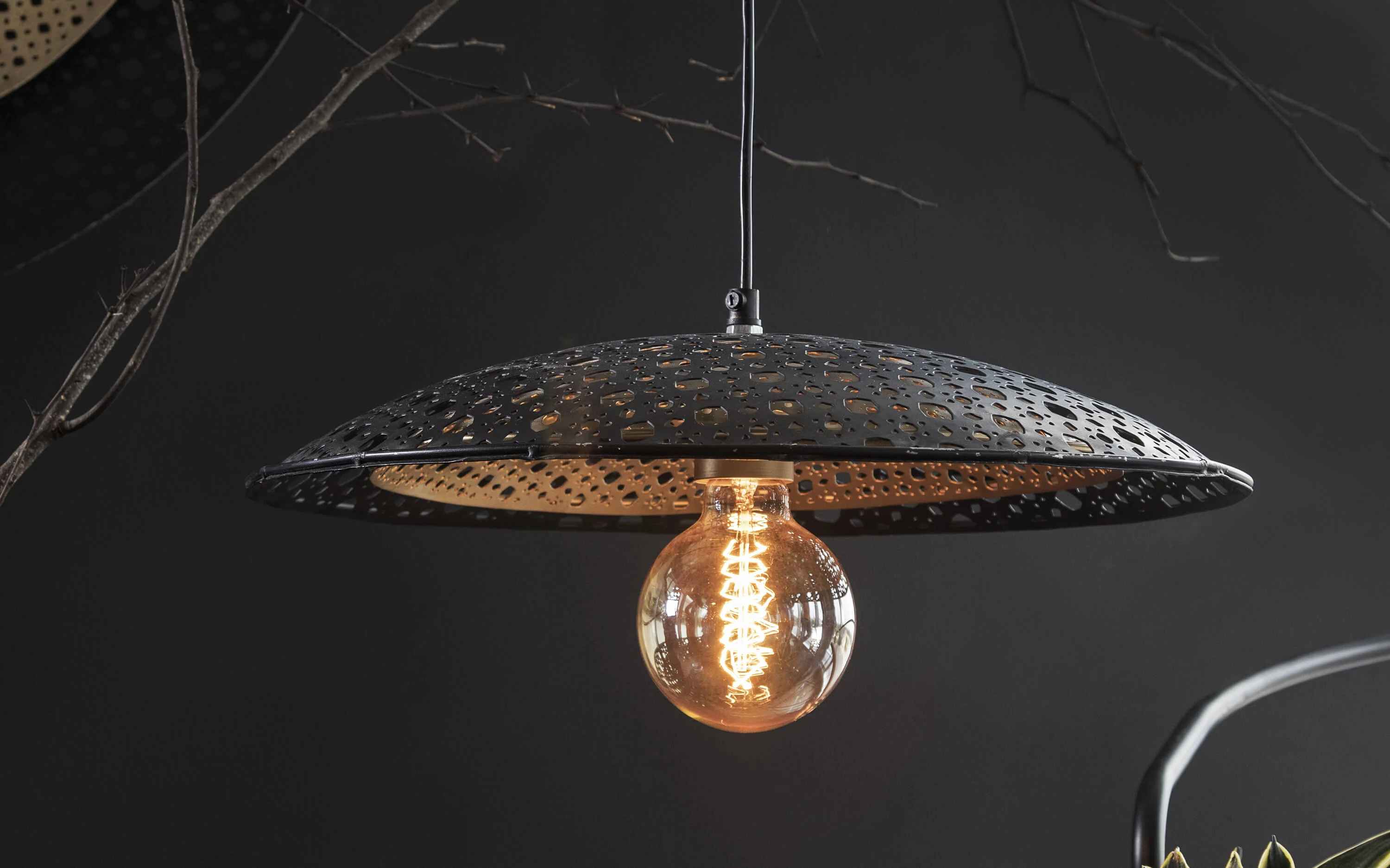 Inspired by the Louvre Abu Dhabi, in this collection we tried to retain the essence of floating dome structures. Geometric patterns on contrastingly finished domes creates the desired effect. External Light source not only highlights the etching design on the metal but also creates similar patterns on the wall. Pair it with the matching hanging lamps, table lamps , floor lamps, wall lamp, mirrors and wall decor for a coordinated look. The Louvre Hanging Lamp Small is a high-quality metal light that is perfect for hanging in hallways, living rooms, bedrooms, dining tables, kitchens, balconies, and more. It features a beautiful gold and black finish that will add elegance to any space. The light is made of iron and has a stylish design that will look great in any setting. "Depending on your screen settings and resolution on your device there may be a slight variance in fabric color and wood polish of the image and actual product. Wood grains will vary from product to product in case of solid wood furniture."