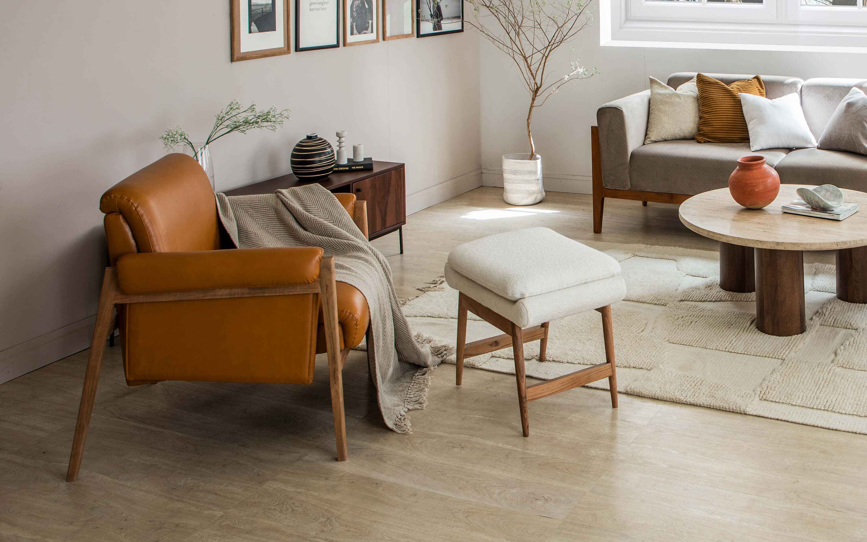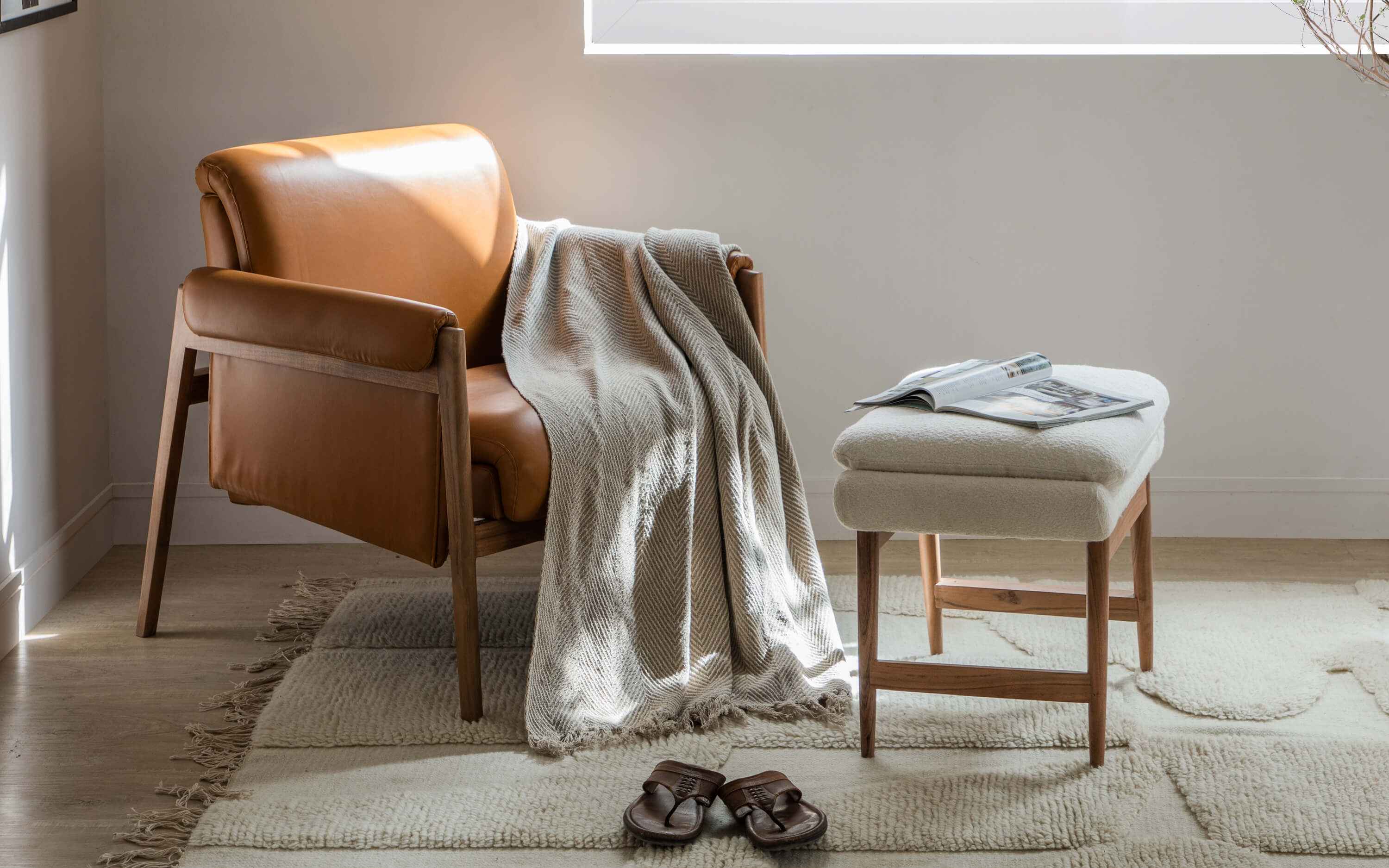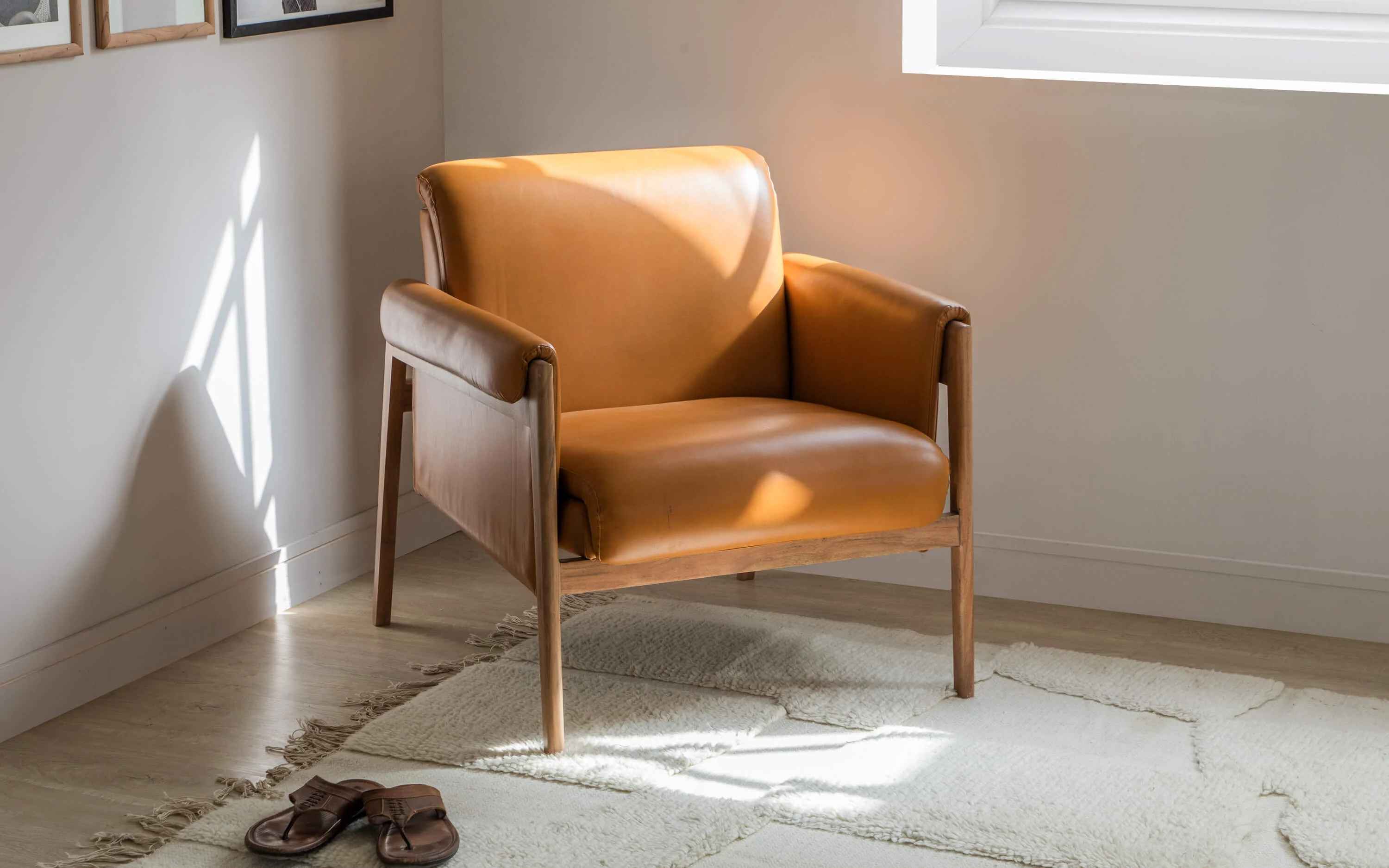 Accent your space with a cool vibe in this modern MAI arm lounge chair. The leather seat and back is densely padded which is remarkably firm, sturdy and comfortable, the bold clean exterior is giving it a high-end designer look. The wooden frame of the chair is constructed out of acacia wood ensuring its durability and strongness. This chair is a stylish yet casual statement piece, great for any room and amazingly comfortable. "Depending on your screen settings and resolution on your device there may be a slight variance in fabric color and wood polish of the image and actual product. Wood grains will vary from product to product in case of solid wood furniture."