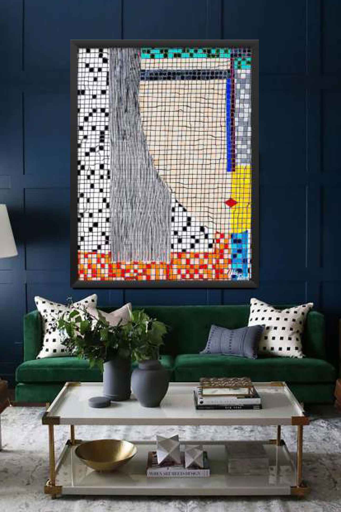 Reflecting upon the role of a woman in the Universe, encapsulates her royalty on canvas. With the grace of her independence and the dependence of this world on her power of creation, Her Majesty is a depiction of the power SHE holds no matter who she is! A contemporary form rooted to feminine beauty with Mosaic Art. Make space of this enlightening piece and let the woman in you be uplifted at every glance!