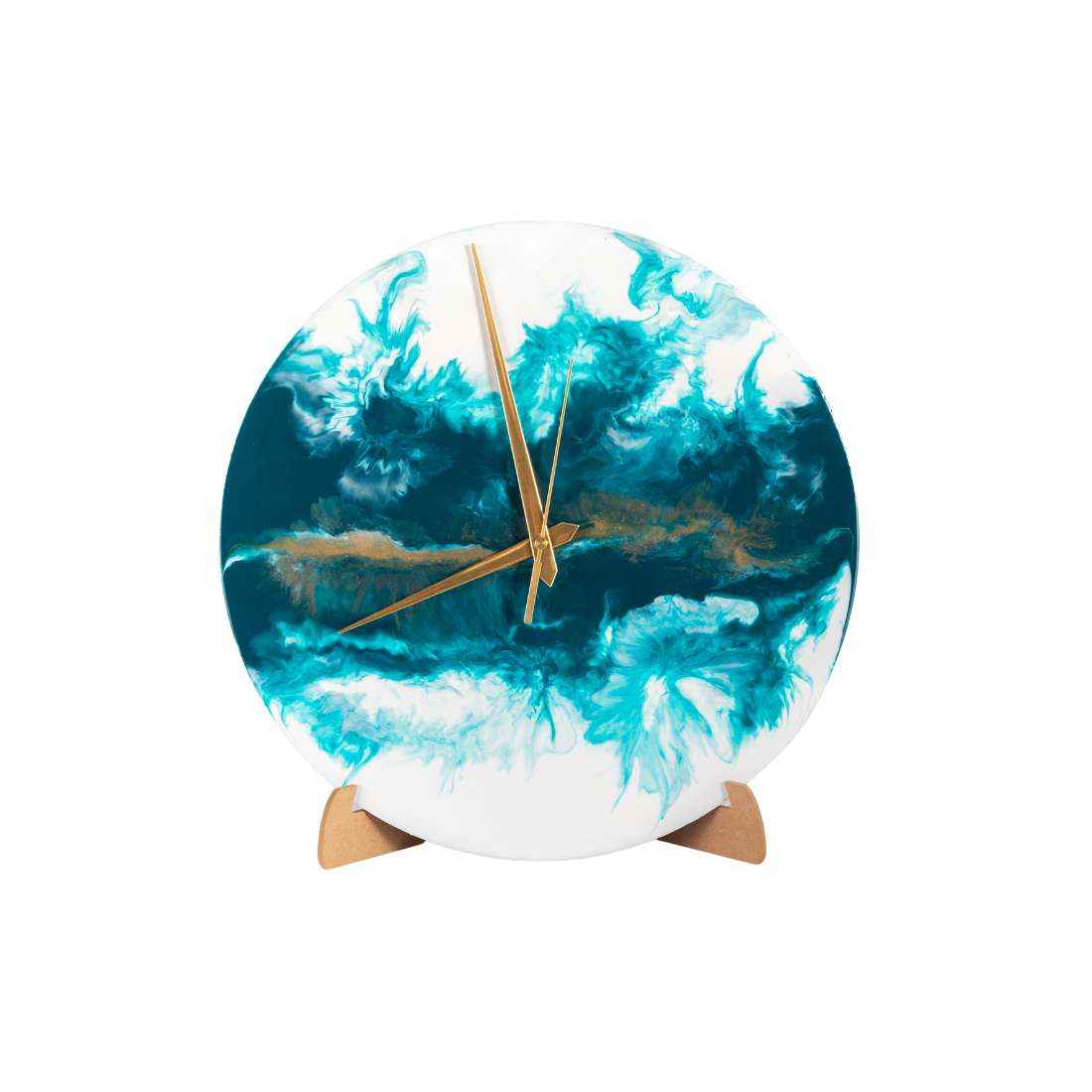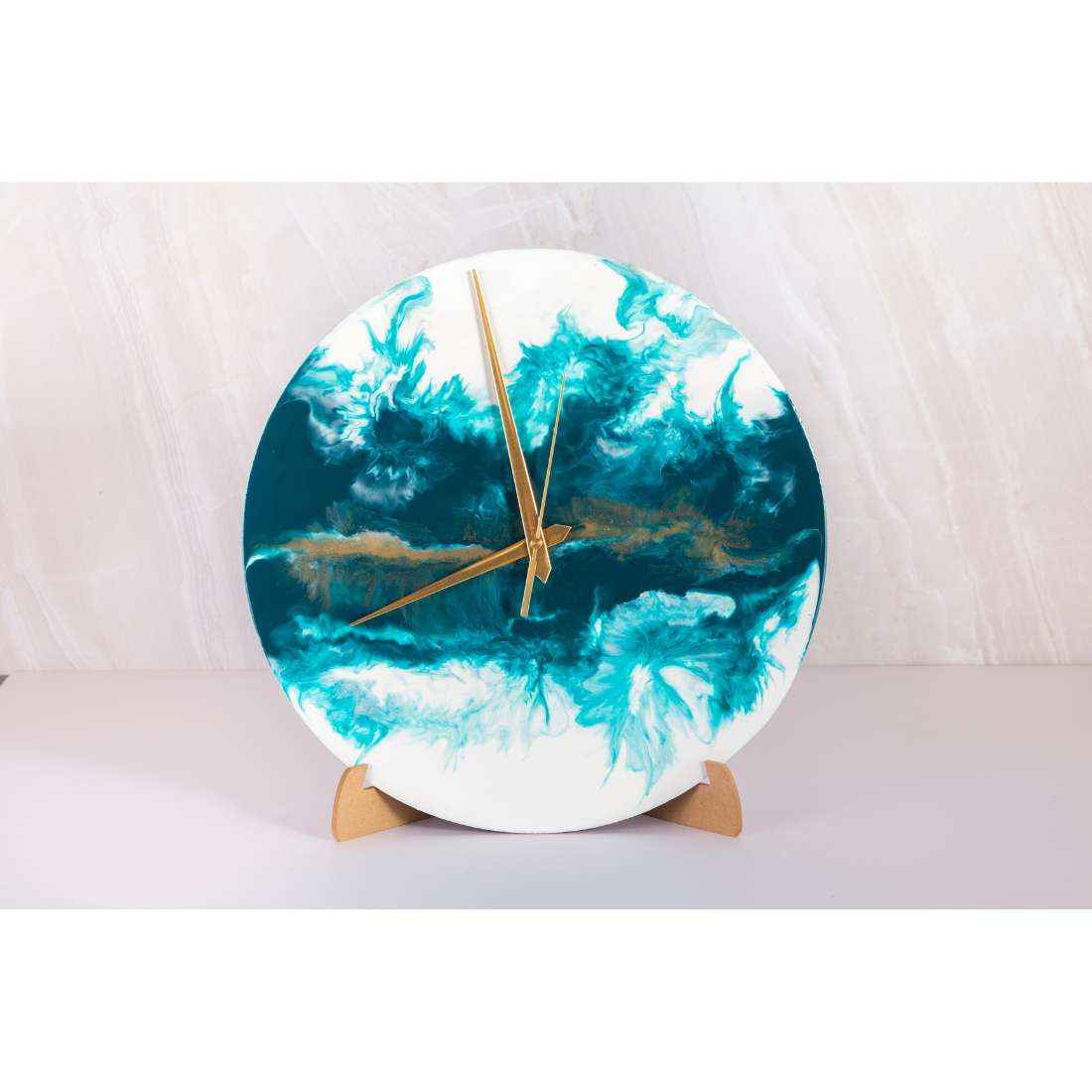 HN Hues Wall Clock is made of Resin Epoxy, Pigment, gold flakes, Metallic gold sketch pen for the outline, made in resin moulds, Handcraft, 100% Waterproof, and Washable, long-lasting, and Durability. The Size of this clock is 13 to 14 Dia. The Machine comes in a Box with a Hook that can be hung from a Nail or a Screw. Generally Used to Décor your Wall and Feel the ocean in your house with natural sand and Marble. The wall clock can hang in the Kitchen, Bedroom, Living Room, Kid's Room, and Office. This wall clock looks Modern, Elegance, and increases beauty at home. A perfect choice for Christmas gift, Children’s Day gift, Wedding gift, Anniversary gift, Mother’s Day gift, Father’s Day gift, or Birthday.