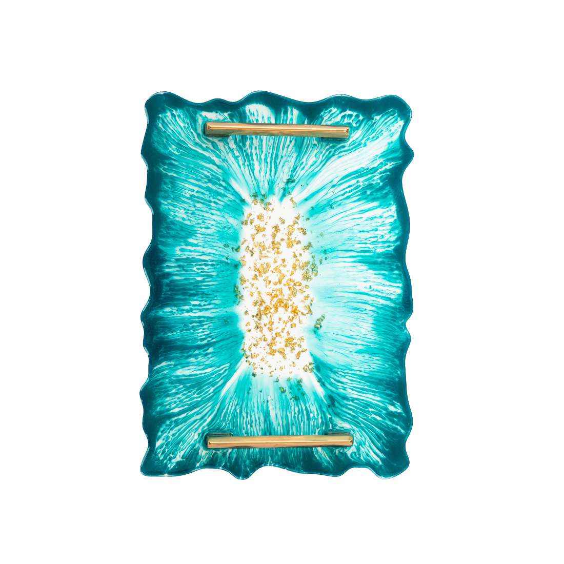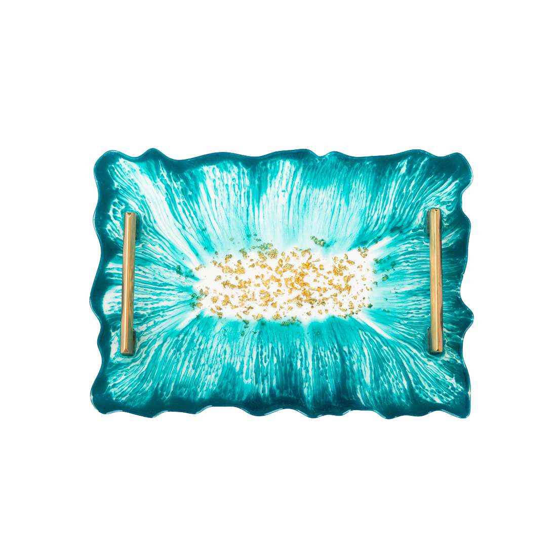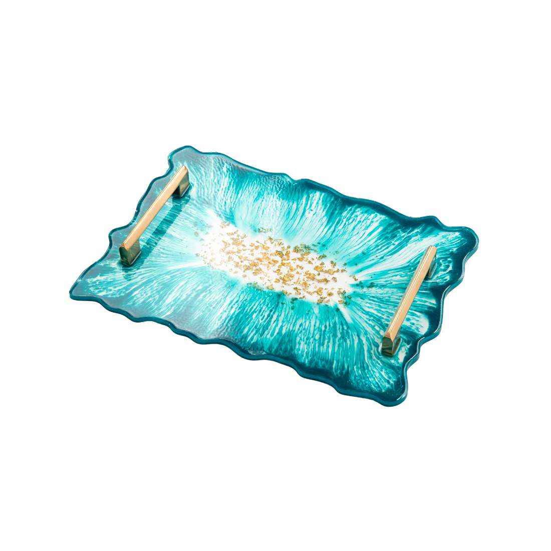 HN Hues Trays are made of Resin Epoxy, Pigment, gold flakes, Metallic gold sketch pen for the outline, made in resin moulds, Handcraft, 100% Waterproof and Washable, long-lasting and Durability, the bearing capacity of this Bowl is up to 10 kg. It comes with two attach stylish gold finish handles to carry the tray. It can be used for Dining & Serving or Even for storing personal items. Perfect for neatly arranging your jewellery, earrings, necklaces, bracelets, rings, brooches, pins, watches, makeup and more on your jewellery tray, can also be used as a dessert dish, fruit plate or snack tray.