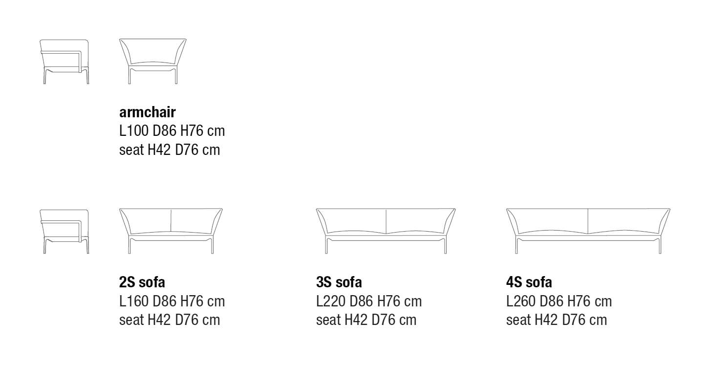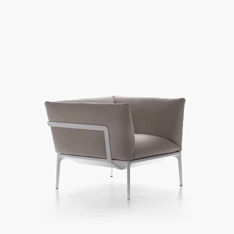 Brand: MDF Italia. Designed by Jean Marie Massaud Synthesis, reduction, lightweight. But above all comfort: these are the principles that Jean Marie Massaud has always been following for his creations. These principles were transferred into Yale collection of sofas and armchairs that in 2011 was awarded the prestigious Golden Compass for its innovative vision of upholstered sofas and armchairs combined with a minimal support structure. In fact, it’s the lightweight of the aluminium composing the supporting base that “embraces” the sophisticated cushions filled with polyester wadding. Offering the chance to play with fabrics, finishes and colours, Yale with its strong identity adapts to every type of interiors, both residential and contract.