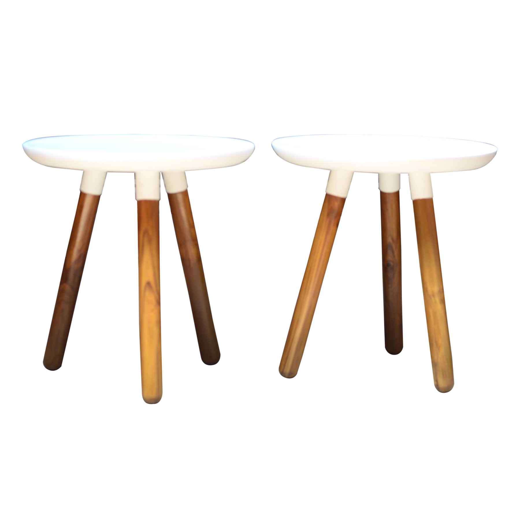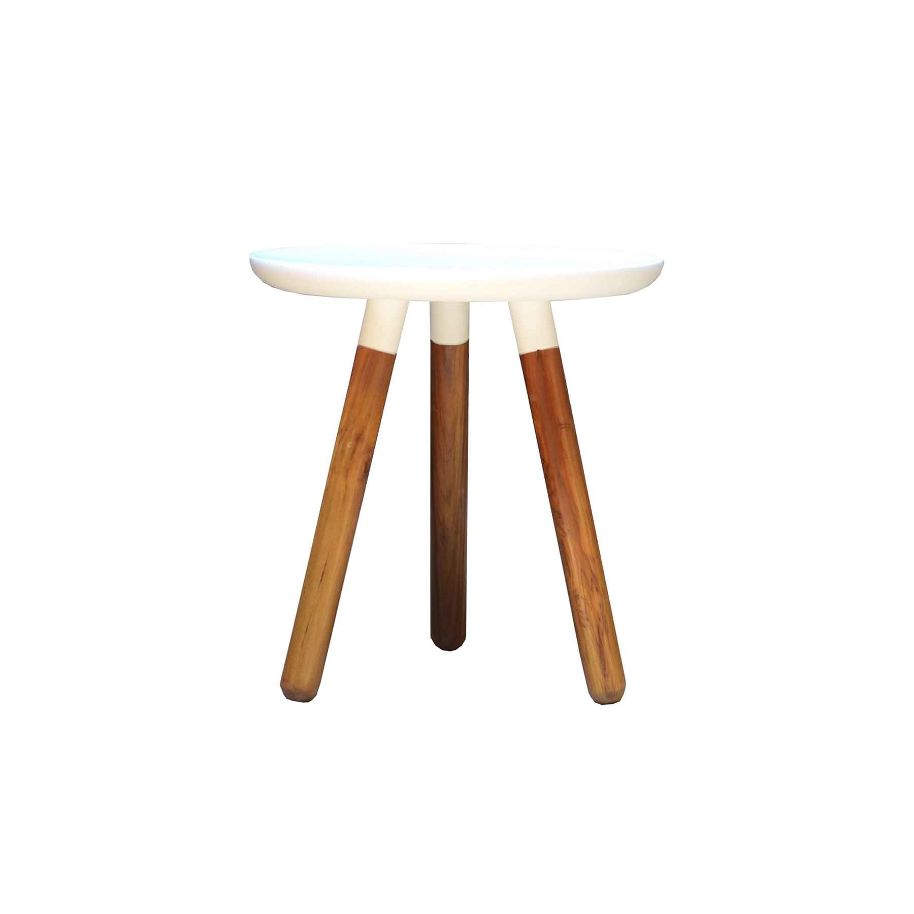 Megan side table makes a perfect setup for a cozy yet simple corner for relaxing. Beechwood base with partially polished legs and Duco painted top.