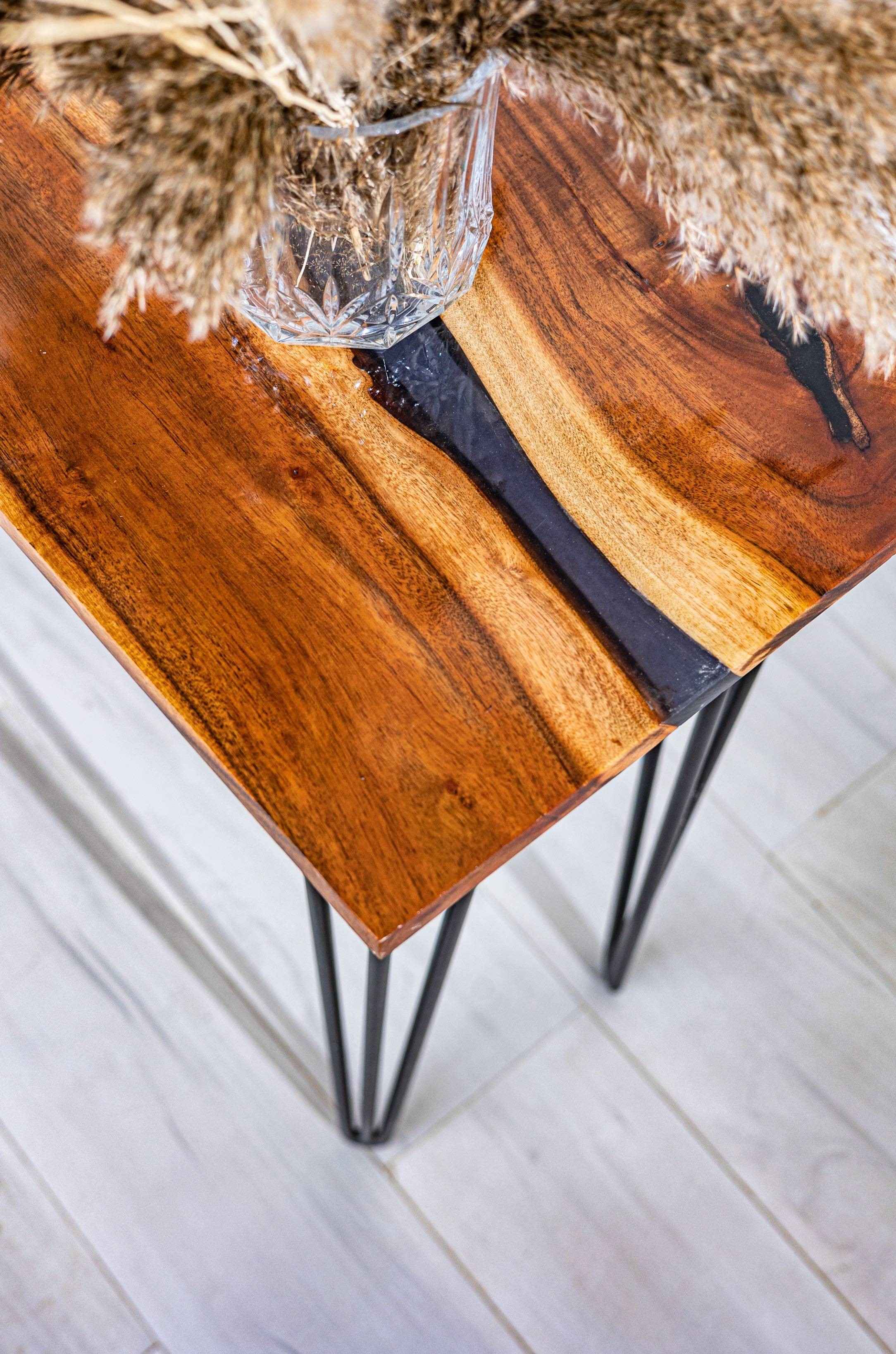 Solid, Acacia, Wood, and, Epoxy, Resin, with, 3-pin, metal, legs.
