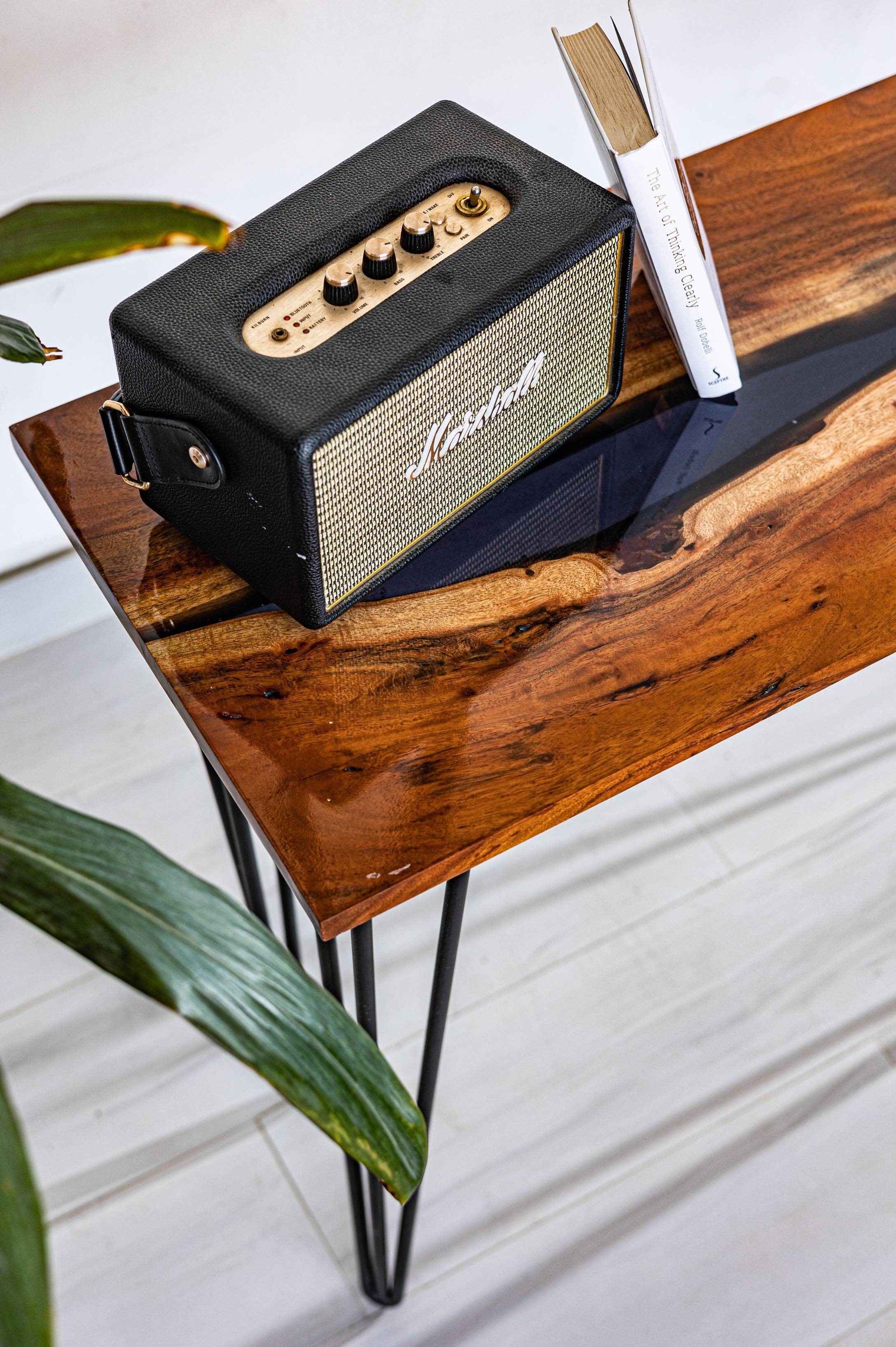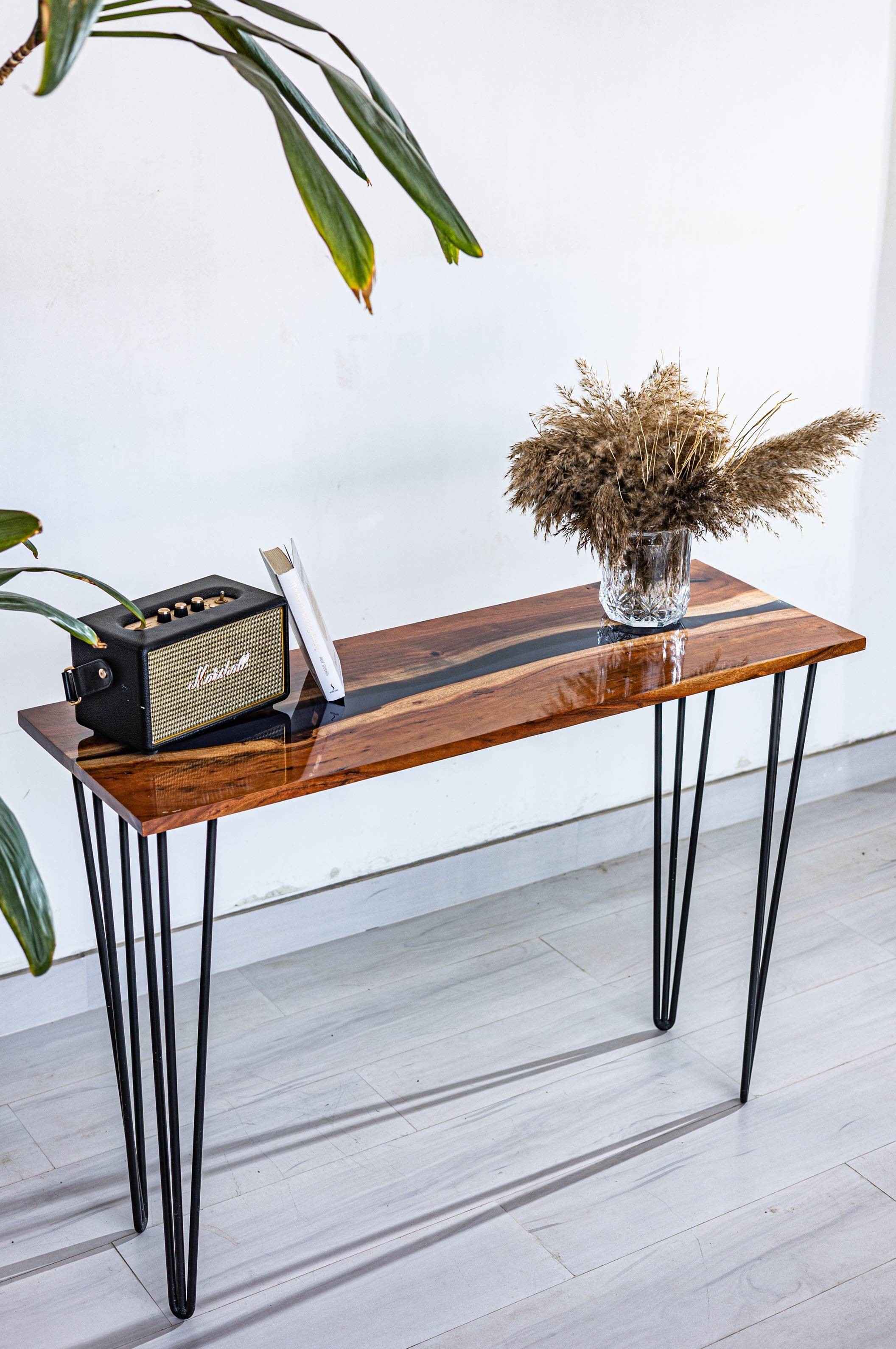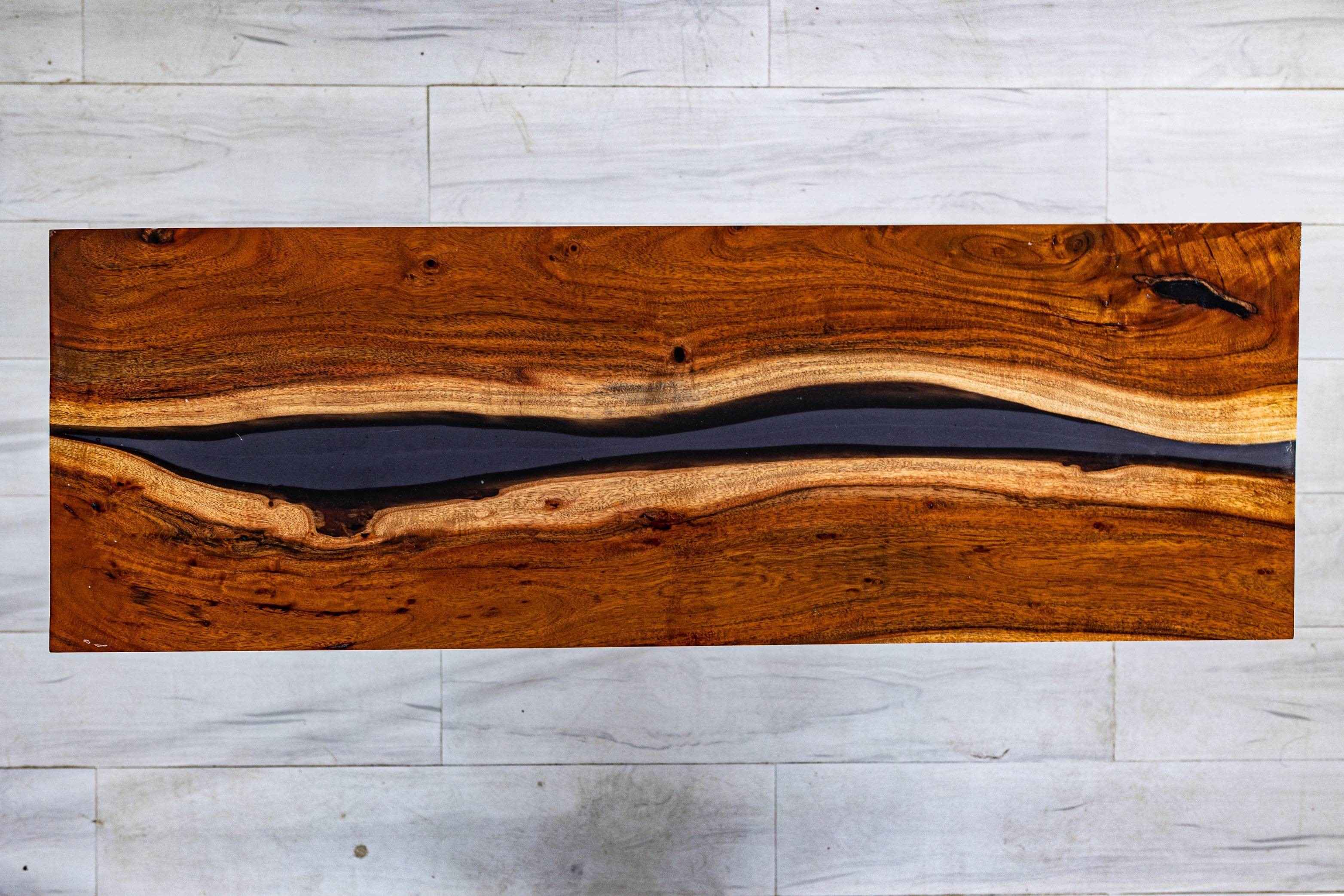 Generously proportioned and expertly crafted, Mellow River brings to mind the peaceful pace and unhurried rhythms of a river canyon. Made using Solid Acacia Wood and Black Epoxy, Mellow River is a graceful take on the traditional rustic console. The juxtaposition of three-pin metal legs lends an airy contrast to the substantial piece.