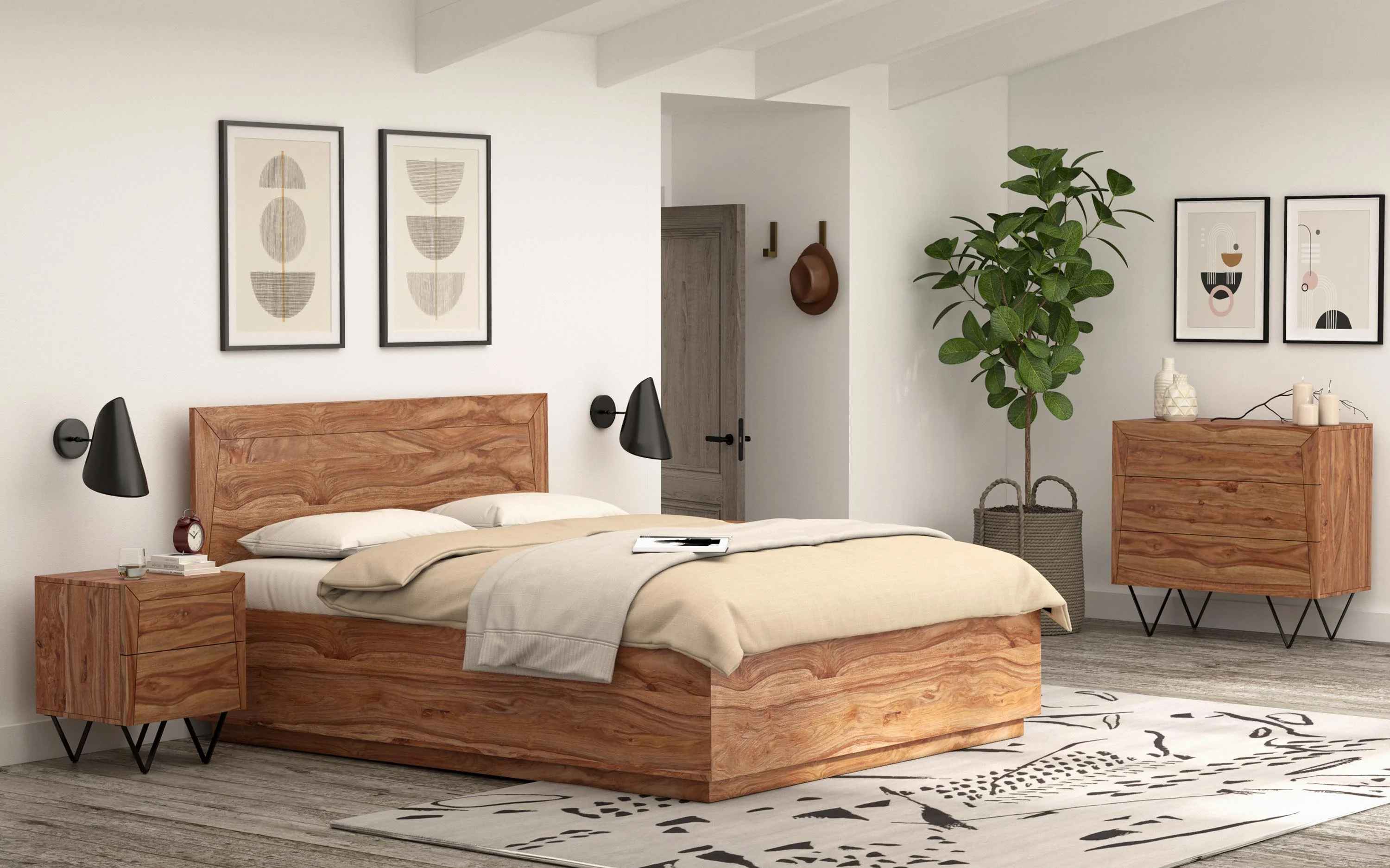 With avante garde design and competent use of goemetry our newest Metric Collection adds a vougish look to your slice of earth under the heavenly skies, all the while being sturdy, strong and long-lasting. No harmful chemicals or toxins are used in our furniture. Natural eco-friendly lacquers are used that helps in sustaining a healthy lifestyle. The headboard of this collection is interchangeable and can be replaced with other headboards we offer. Easy to assemble. "Depending on your screen settings and resolution on your device there may be a slight variance in fabric color and wood polish of the image and actual product. Wood grains will vary from product to product in case of solid wood furniture."