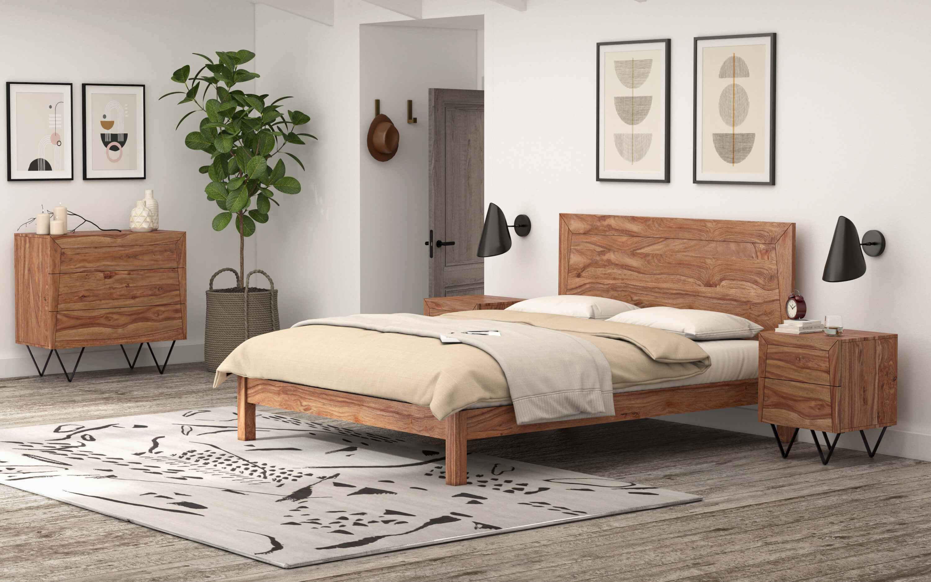 With avante garde design and competent use of goemetry our newest Metric Collection adds a vougish look to your slice of earth under the heavenly skies, all the while being sturdy, strong and long-lasting. No harmful chemicals or toxins are used in our furniture. Natural eco-friendly lacquers are used that helps in sustaining a healthy lifestyle. The headboard of this collection is interchangeable and can be replaced with other headboards we offer. Easy to assemble. "Depending on your screen settings and resolution on your device there may be a slight variance in fabric color and wood polish of the image and actual product. Wood grains will vary from product to product in case of solid wood furniture."