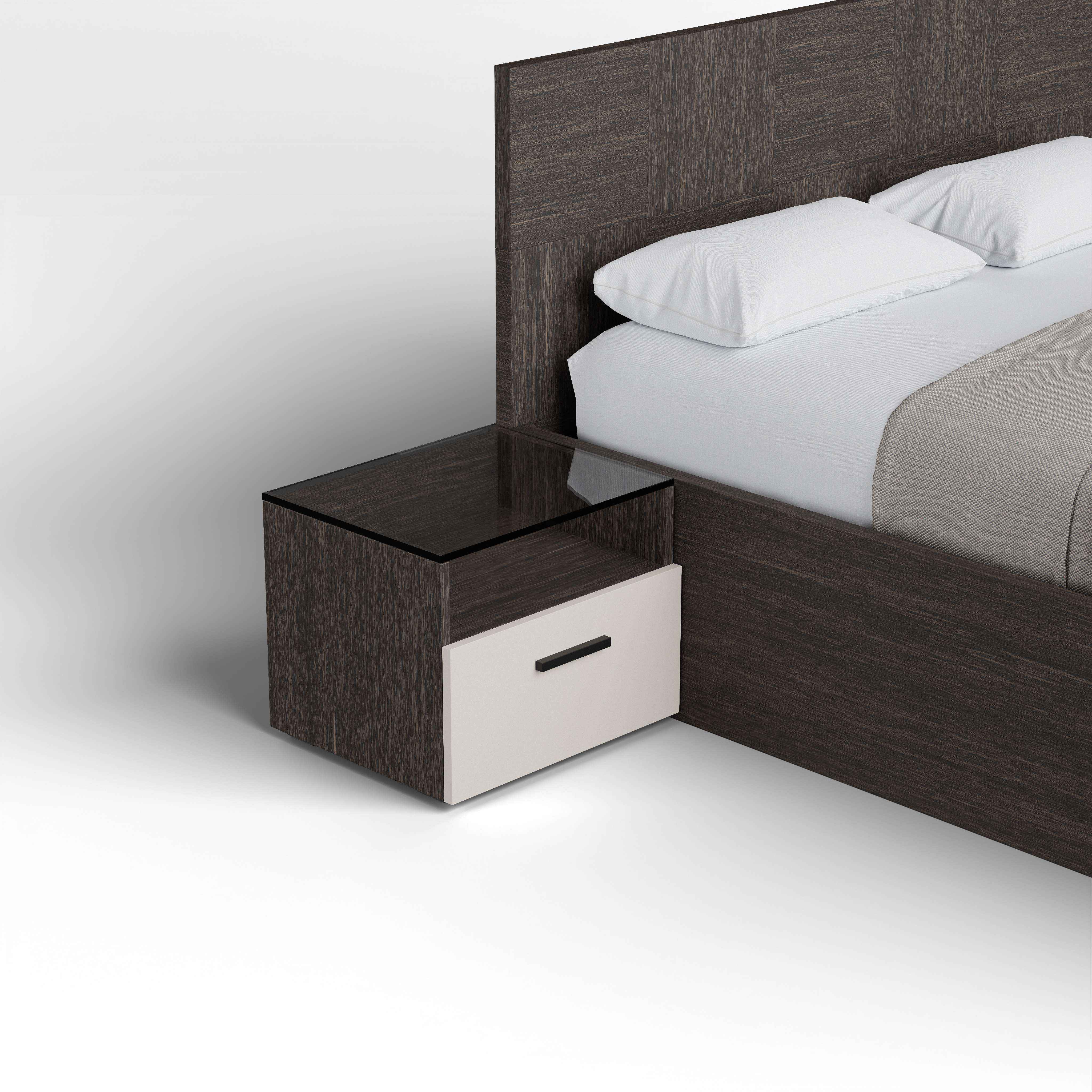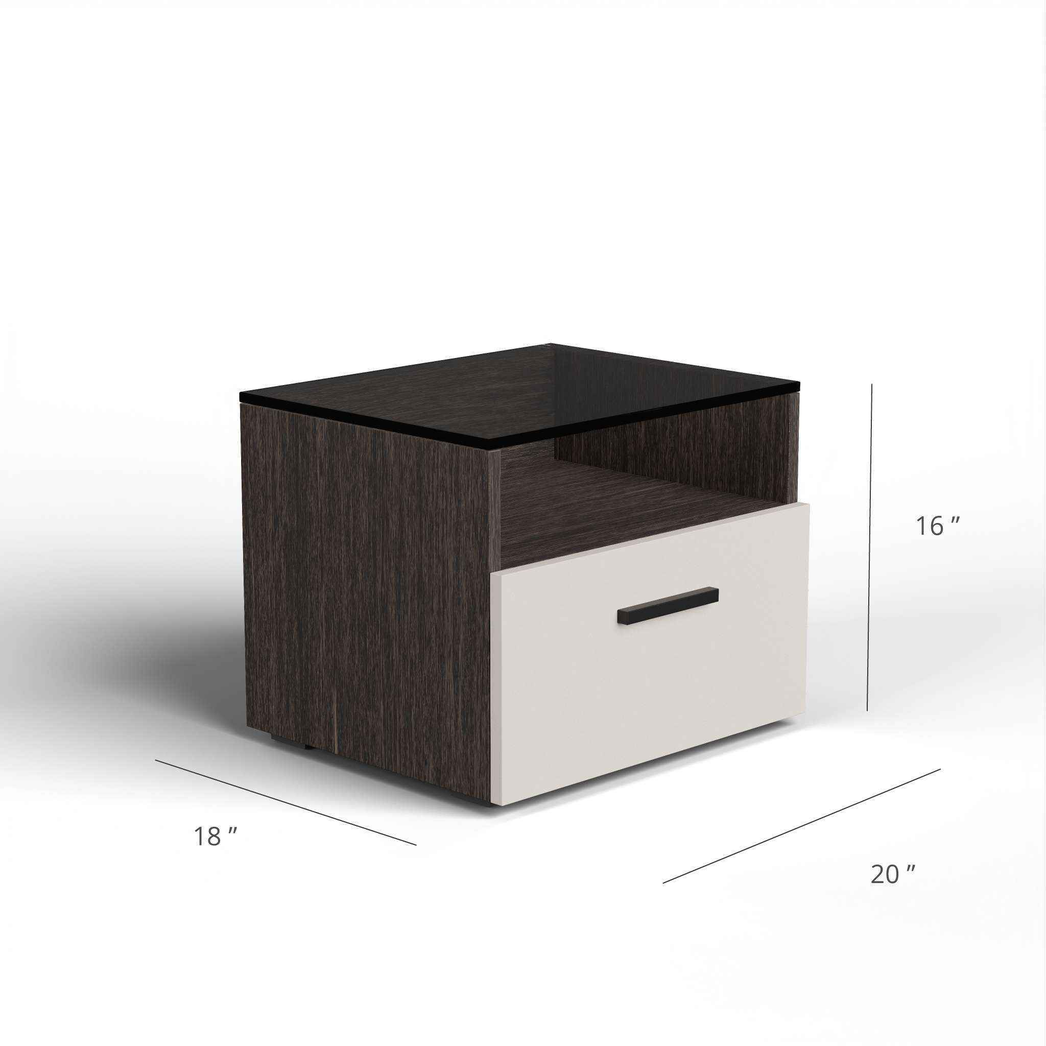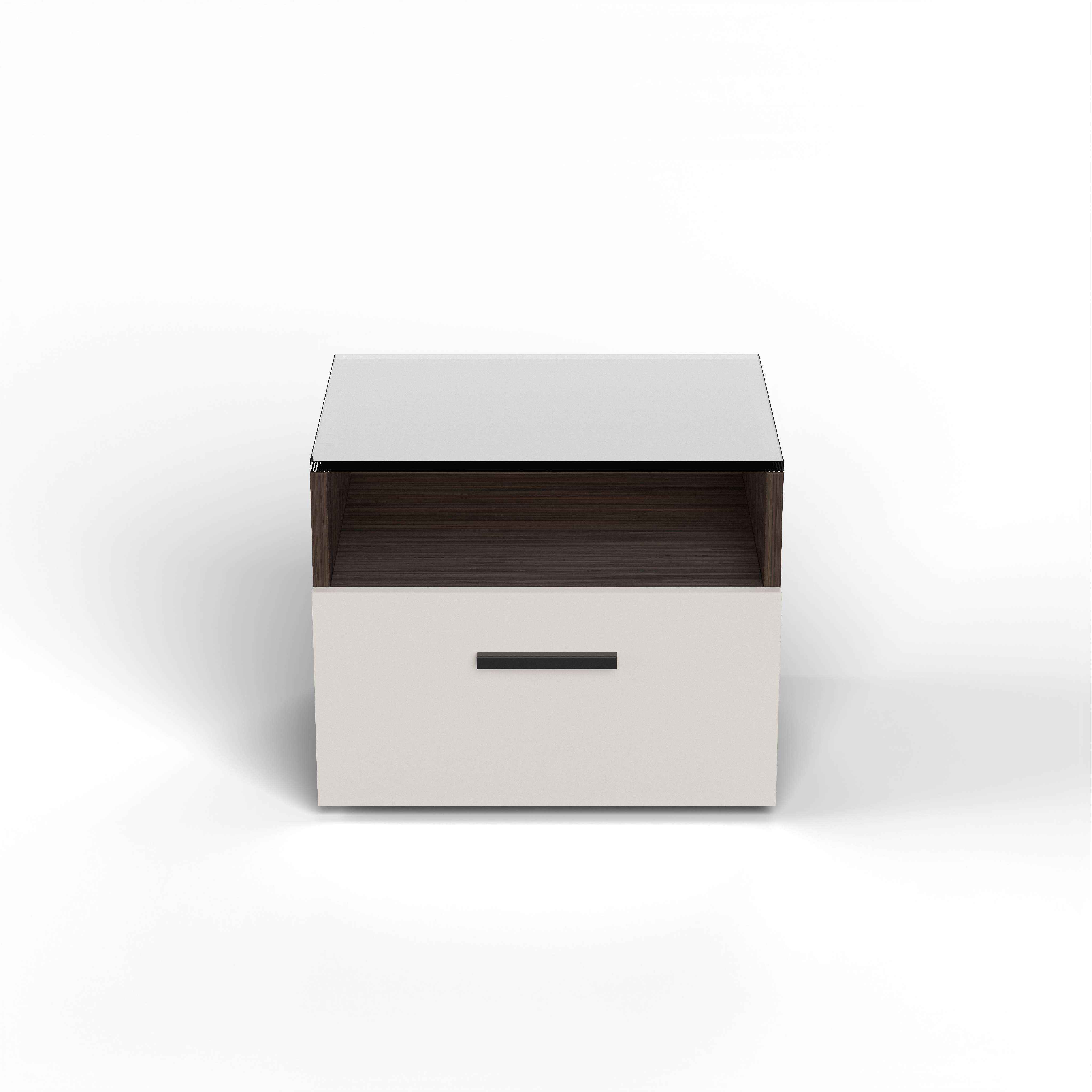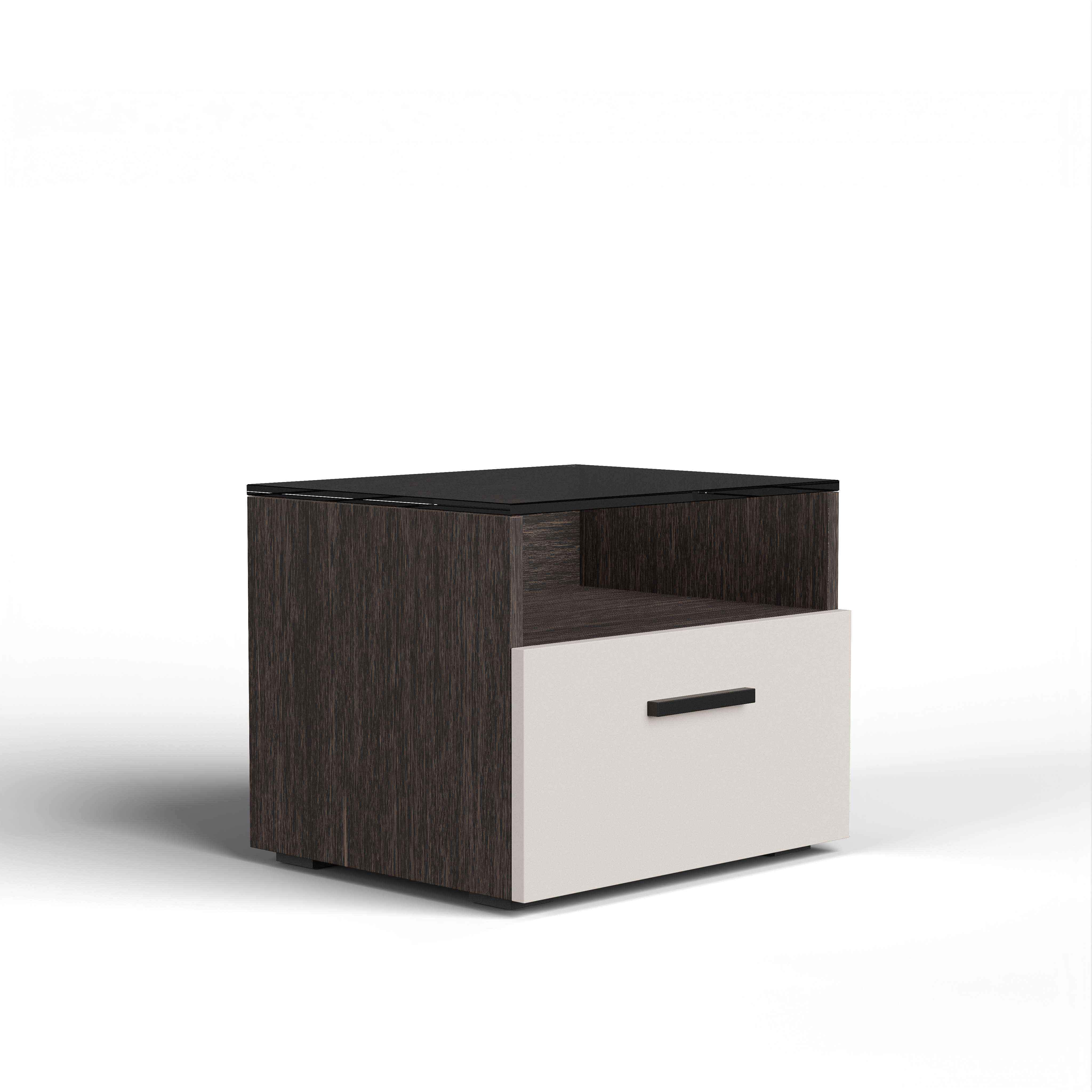 Brown Oak Post-Laminated Plywood Carcass; Champagne Post-Laminated Plywood Drawer Fascia; Black Powdercoat Mild Steel Handle; Irish Cream Post-Laminated Plywood Carcass