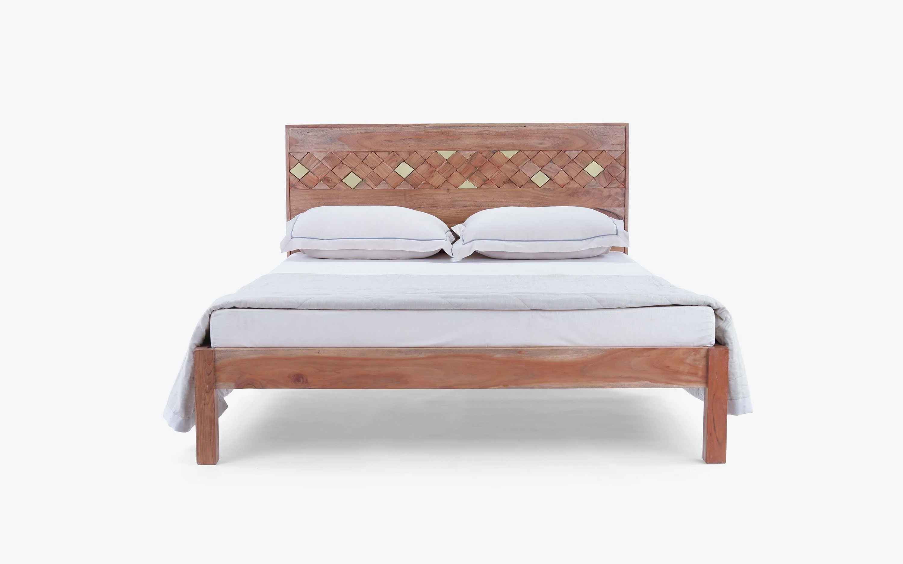 As the name suggests, Milan, is an extremely glamorous and contemporary collection. This Art Deco inspired collection blends minimalism with glamour by putting together a combination of Mango wood and brass. The intricate pattern created with brass and wood blocks brings the pieces alive. No harmful chemicals or toxins are used in our furniture. Natural eco-friendly lacquers are used that helps in sustaining a healthy lifestyle. The headboard of this collection is interchangeable and can be replaced with other headboards we offer. Easy to assemble. "Depending on your screen settings and resolution on your device there may be a slight variance in fabric color and wood polish of the image and actual product. Wood grains will vary from product to product in case of solid wood furniture."