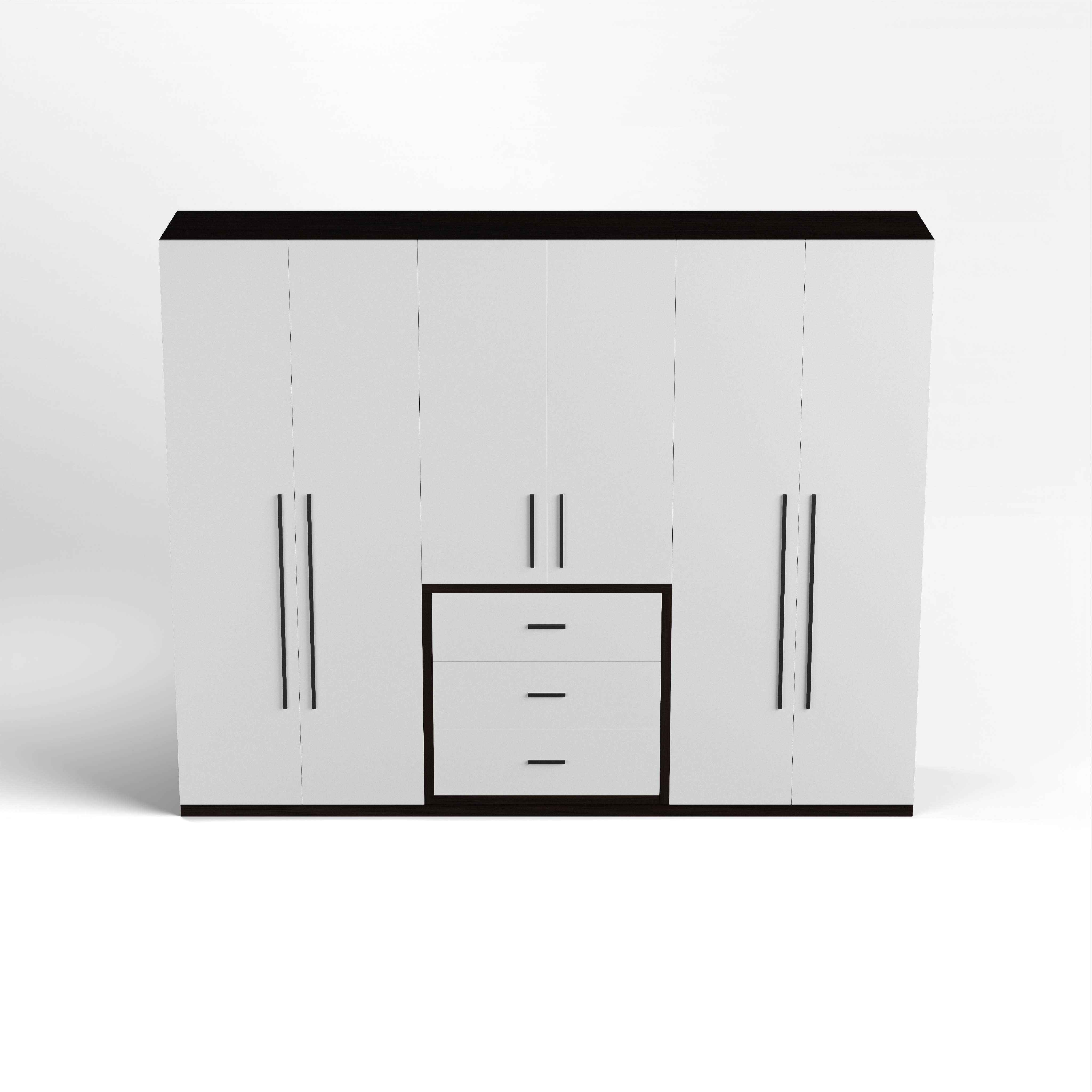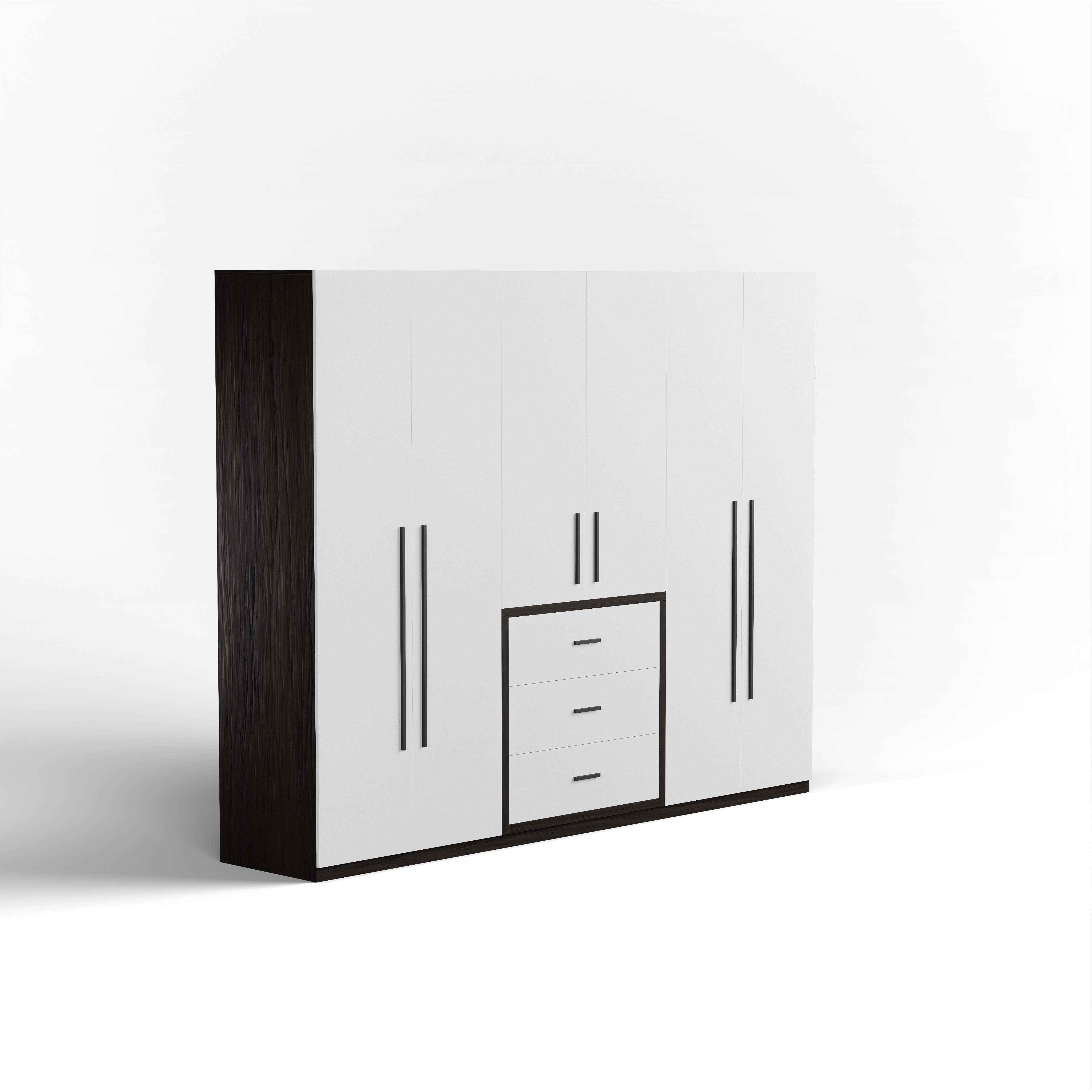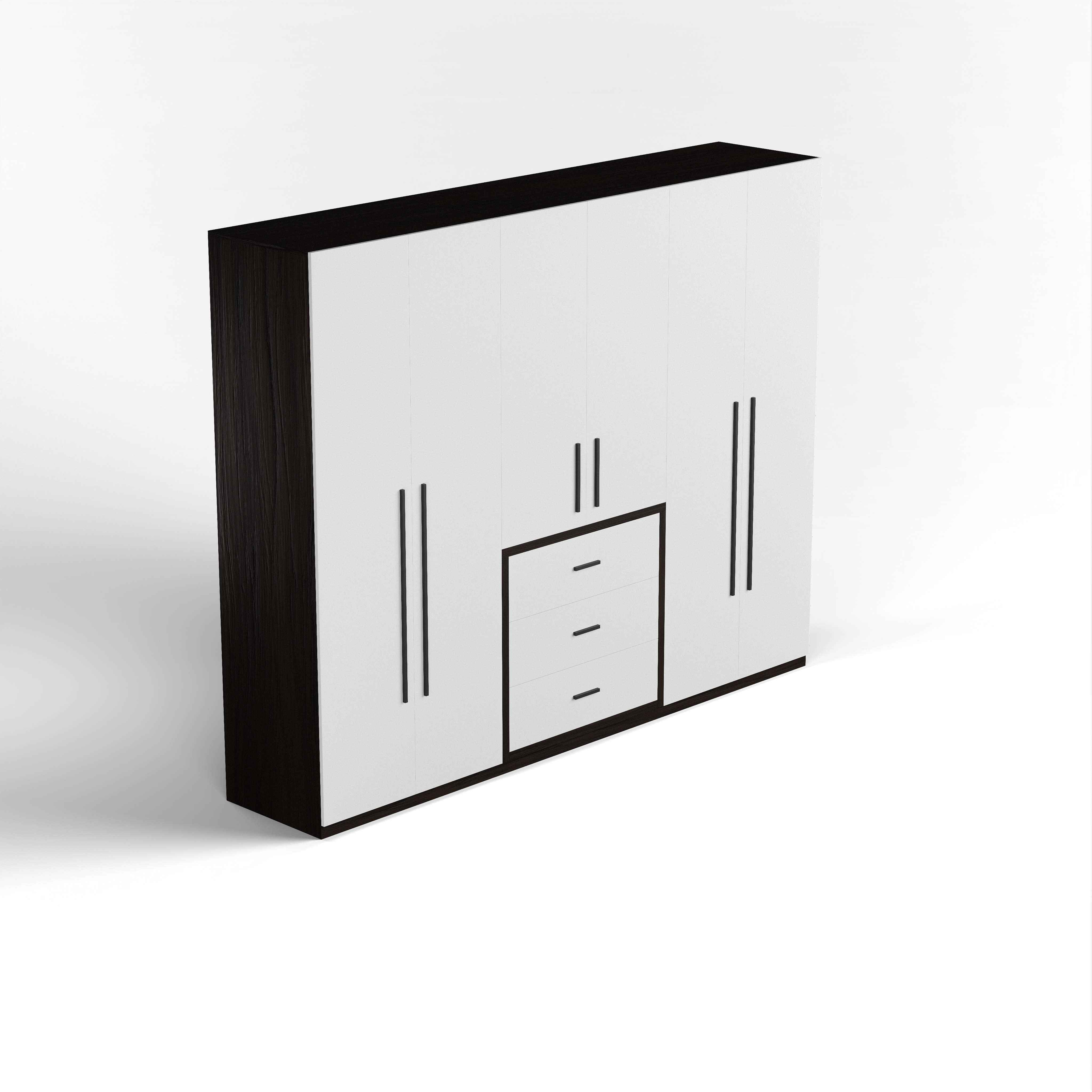 Oakwood Pre-Laminated MDF Carcass; Oakwood Pre-Laminated MDF Carcass; Frosty White Pre-Laminated MDF Shutter; Black Powdercoat Stainless Steel 304 Matt Handle
