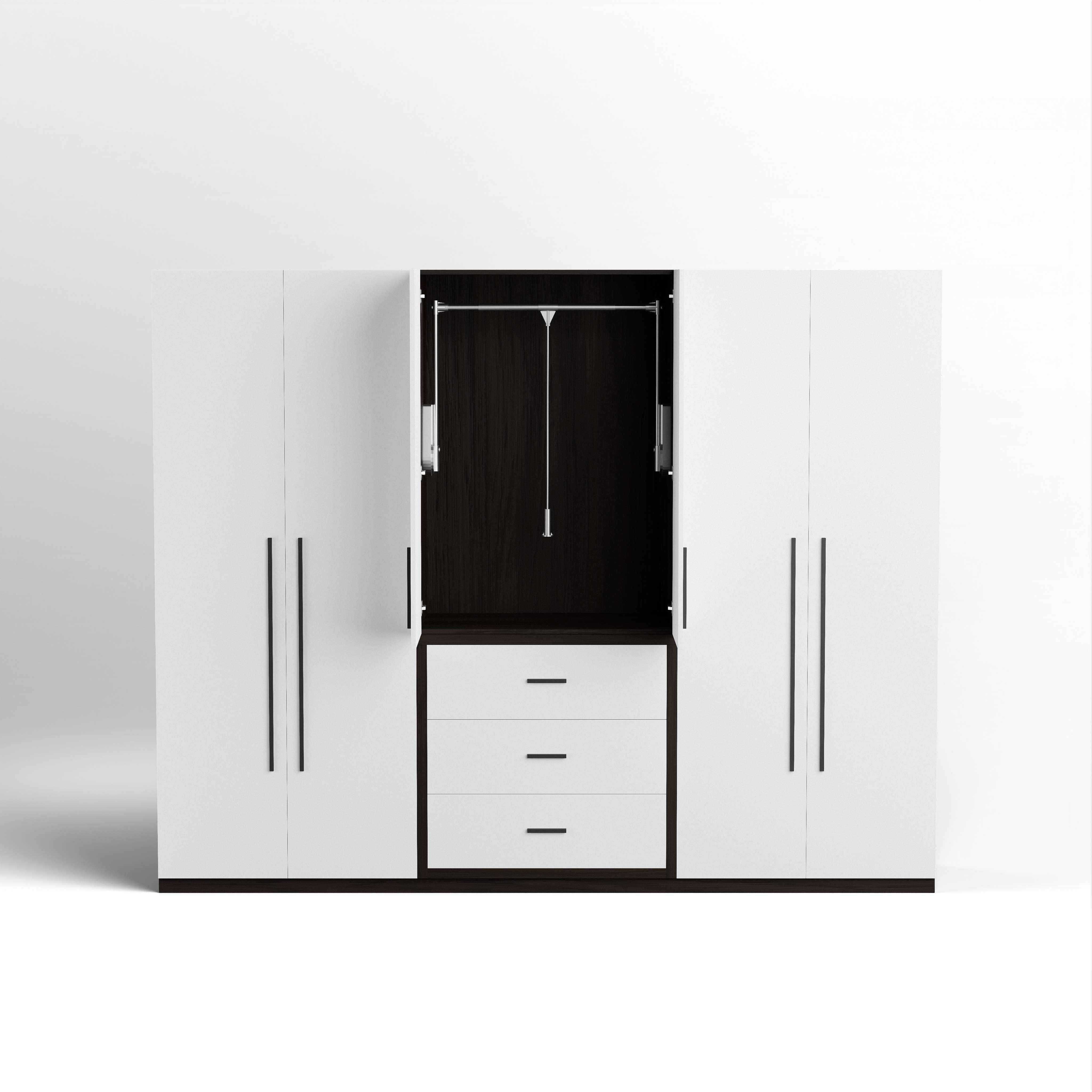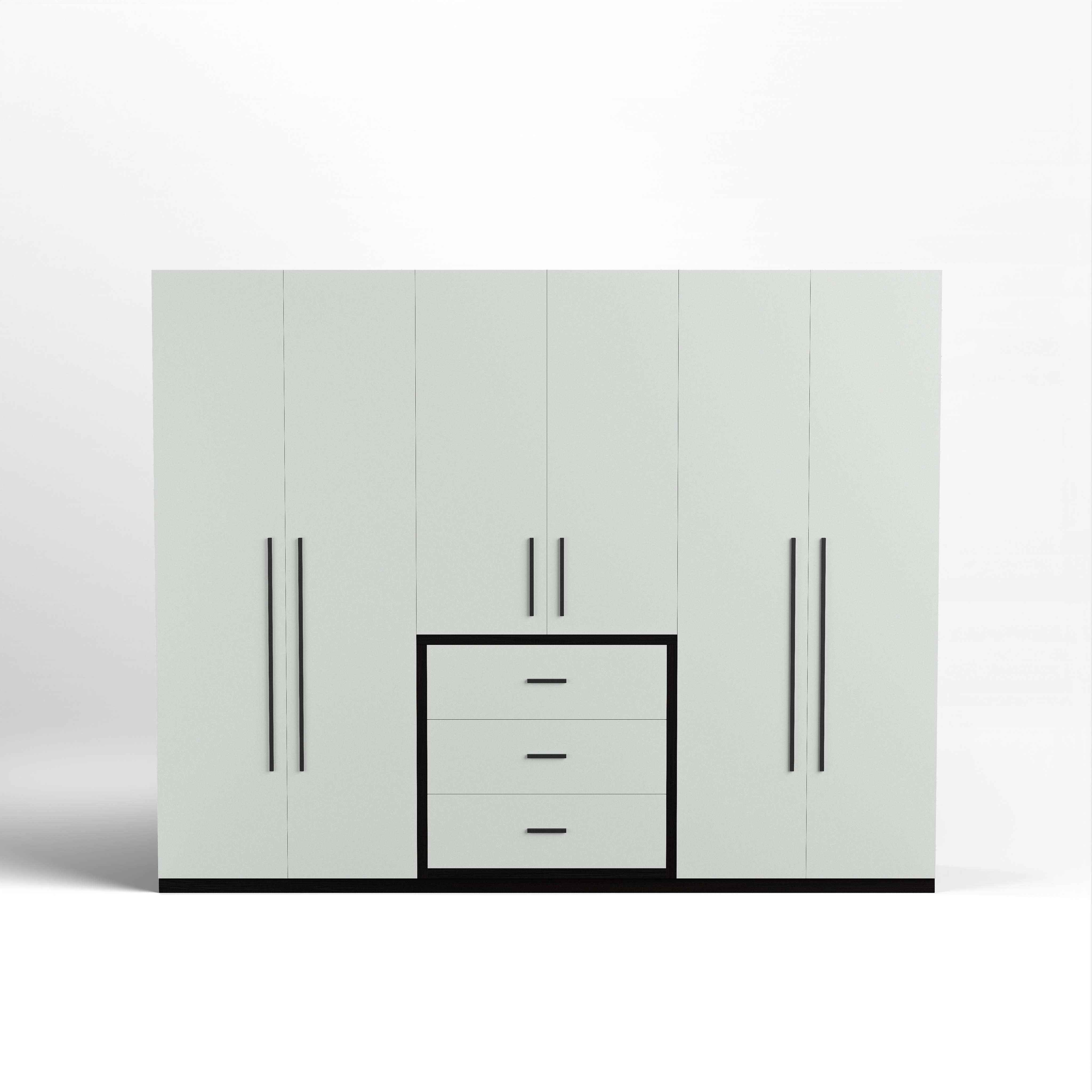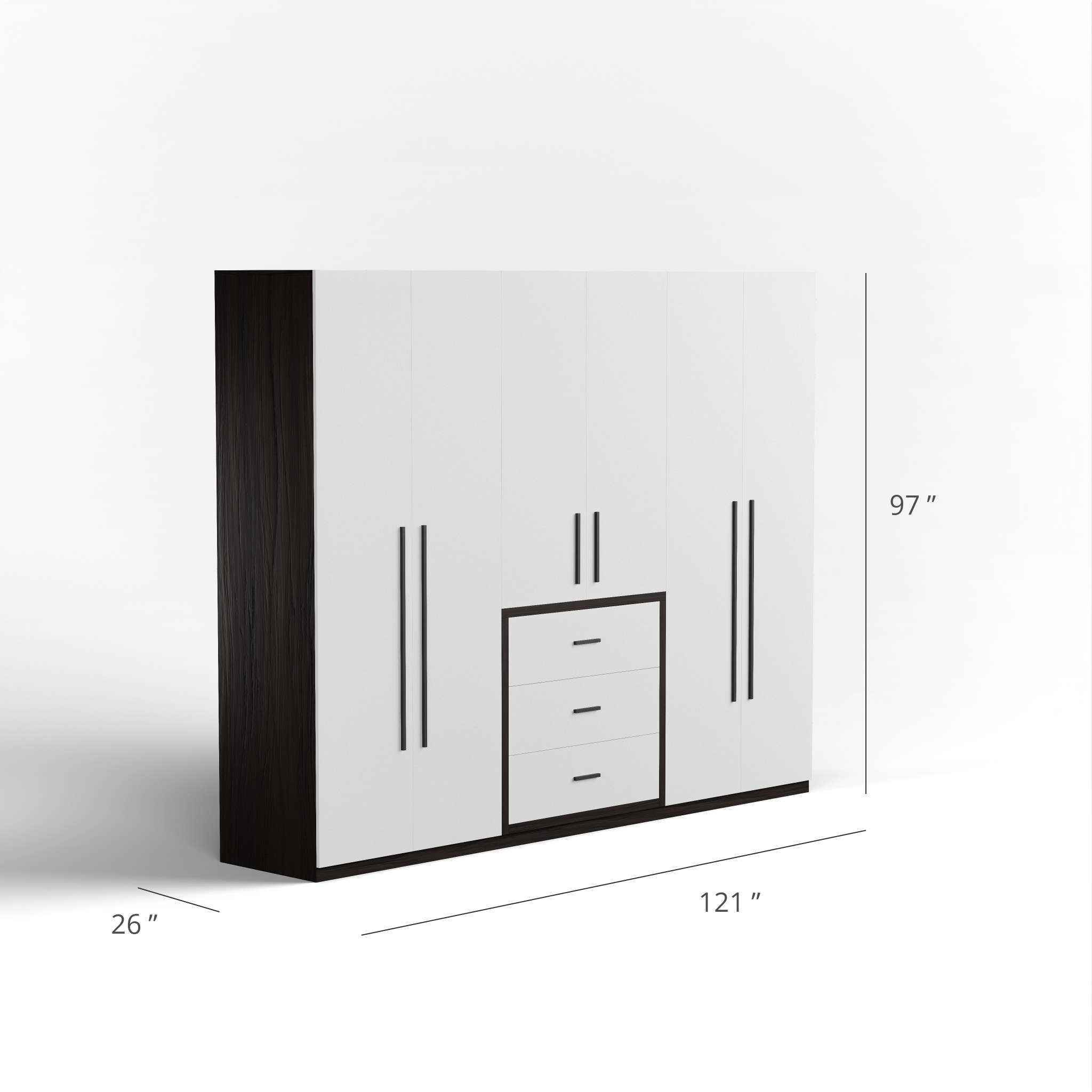 Oakwood Pre-Laminated MDF Carcass; Oakwood Pre-Laminated MDF Carcass; Frosty White Pre-Laminated MDF Shutter; Black Powdercoat Stainless Steel 304 Matt Handle