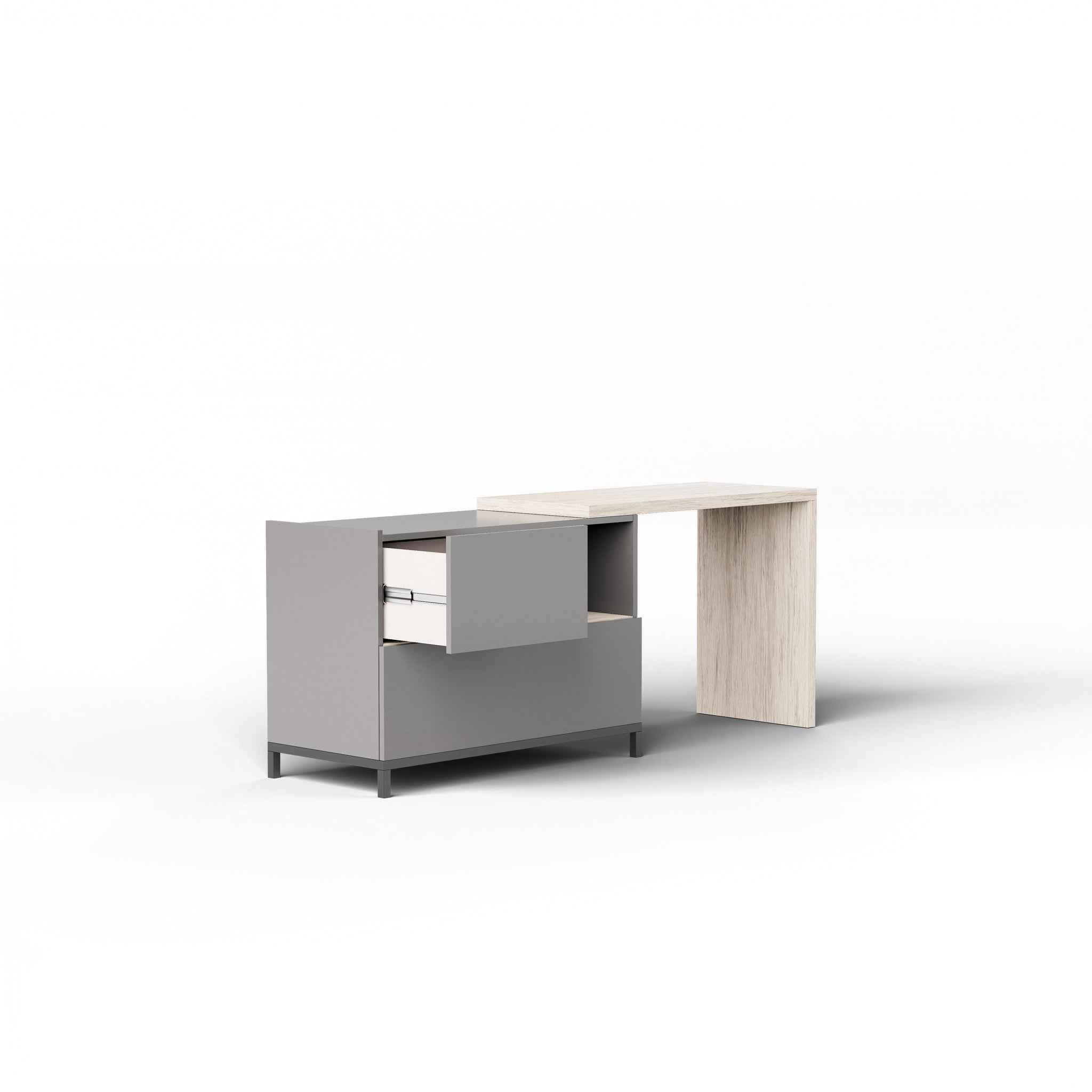 Gothic Grey Post-Laminated Plywood Carcass; White Oak Post-Laminated Plywood Carcass; Metal Grey Post-Laminated Plywood Drawer Fascia; Metal Grey Post-Laminated Plywood Drawer Fascia; White Oak Post-Laminated Plywood Accessories