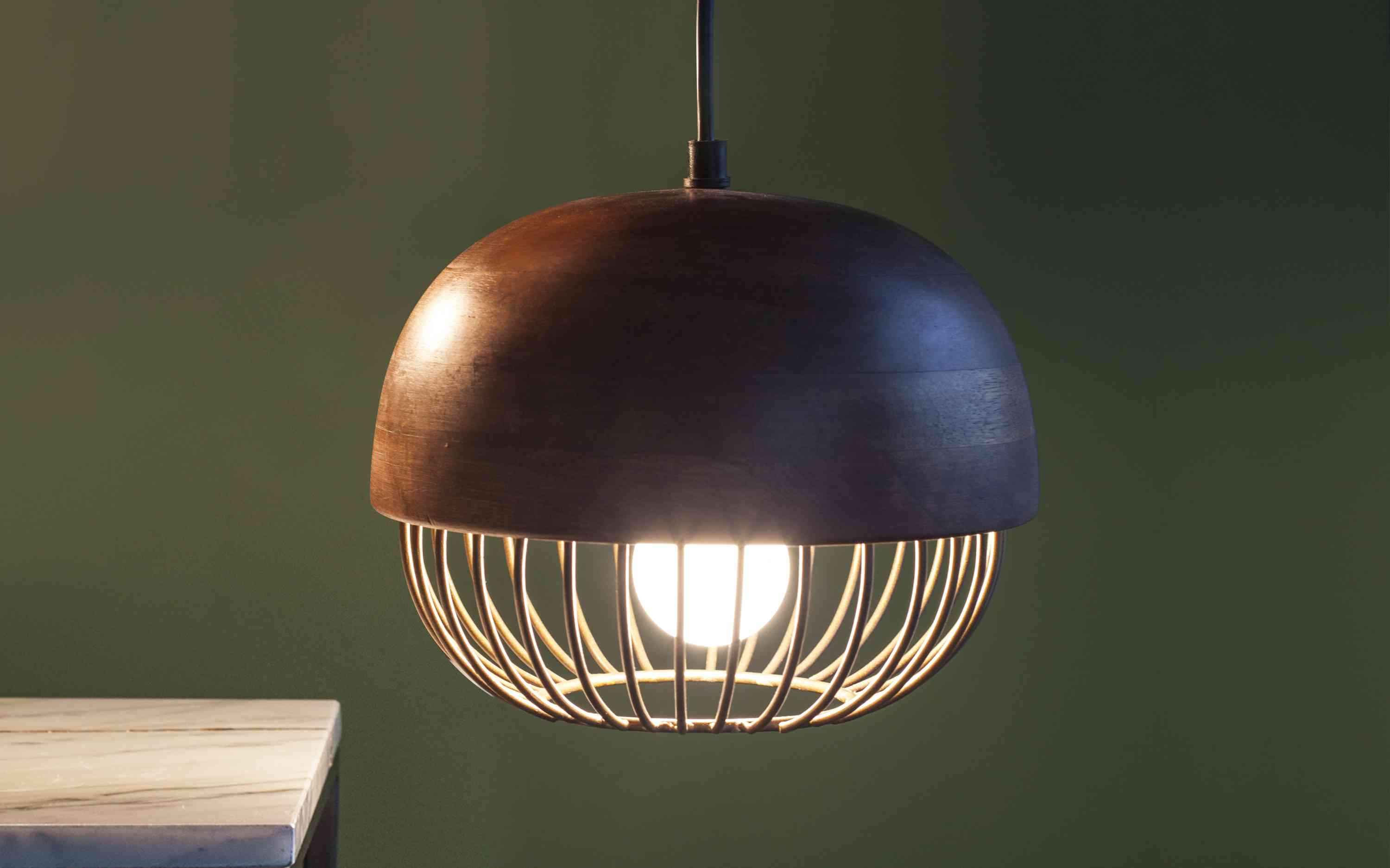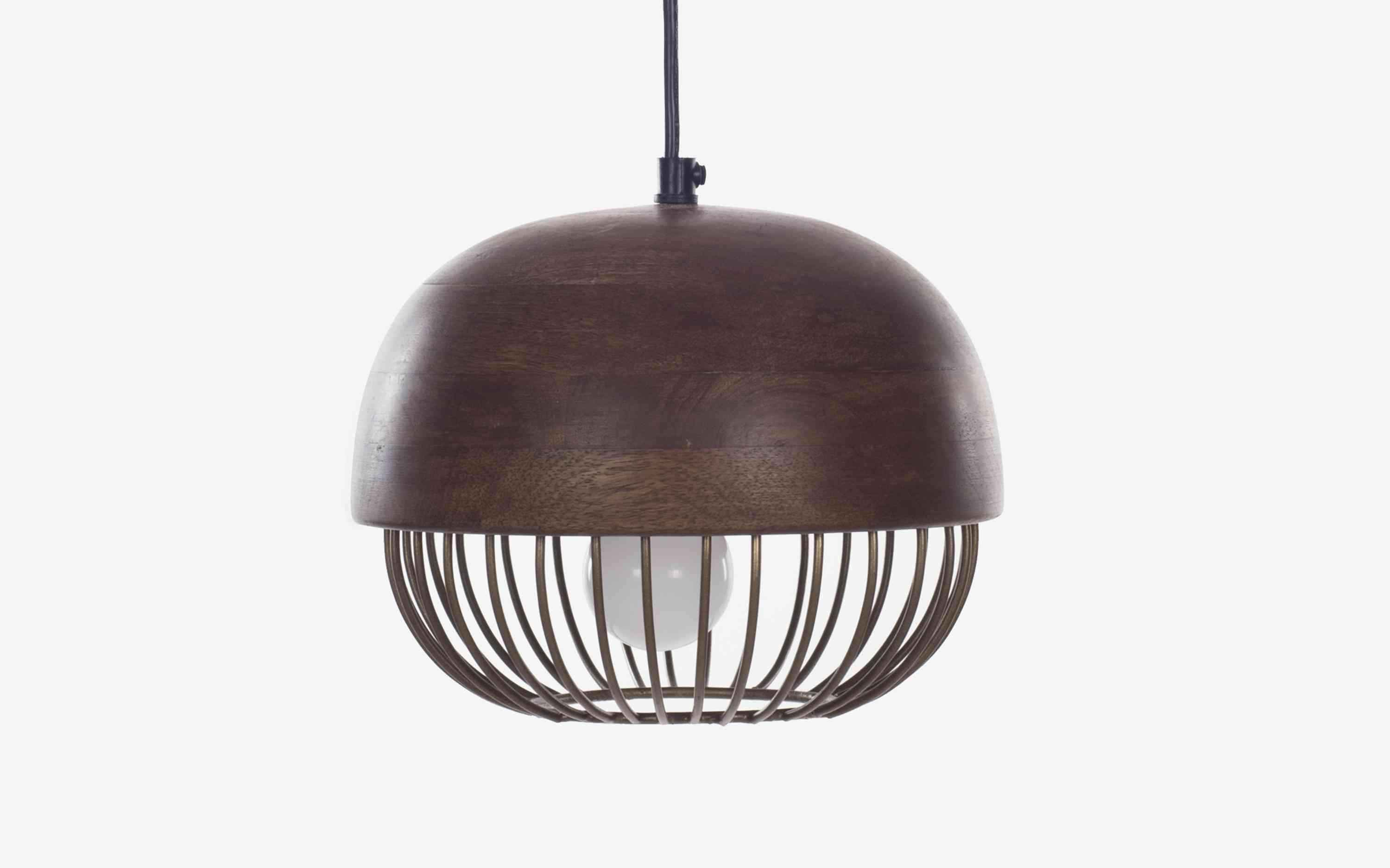Minya Hanging Lamp is a simple and classic lamp in Mango wood in light walnut finish and metal in gold finish. Half of the sphere is made in wood and the other half in wire tthis makes the lamp lighter and interesting. This lamp looks beautiful over a bedside table. Minya Round Hanging Lamp is a wooden & metal pendant light for ceiling, hallway, living room, Bedroom, dining table, kitchen, balcony ,outdoor, Office & corner decoration. This light is made of mango wood and iron. The finish is gold on the iron and walnut on the wood. "Depending on your screen settings and resolution on your device there may be a slight variance in fabric color and wood polish of the image and actual product. Wood grains will vary from product to product in case of solid wood furniture."