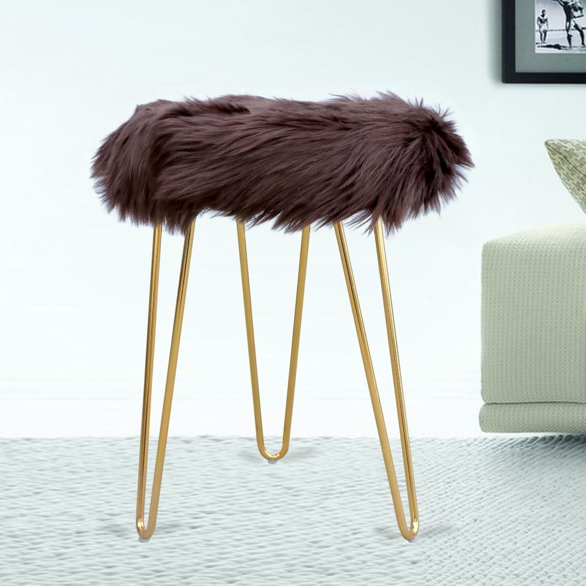 Small Faux Fur Footrest: The beautiful small ottoman can be placed under a desk for raising your feet and legs to a proper height, reducing the pressure on your back and giving you a comfortable sitting condition. Wrapped in lightweight and soft faux fur fabric, the small footstool ottoman looks cozy and chic, adds a dash of color to the room. Comfortable Footstool: This vanity stool ottoman is padded with a soft cushion that you can sit or rest your feet with satisfaction. You can put the ottoman next to a sofa and relax your feet after a busy day working or use it as a small seat stool for kids. Ideal for the living room, bedroom, office, children's playroom, and so on. Durable Foot Stool: This small stool ottoman is supported by 3 metal legs and a wooden frame, stable and durable enough for long-time use. Featuring small size and lightweight, the stool is convenient to move or hide in your home. Note: please do not stand on the stool, to avoid danger. Easy Assembly: The ottoman comes with all of the necessary guides and tools so that you can get the ottoman assembled in minutes according to the steps in the manual. If you have any questions, please feel free to contact us and we will answer your questions as soon as possible. Dimensions: 11.81” Length x 11.81” Width x 11.02“ Height. Weight: 2.98 lbs. Color: Brown Max Load Capacity: 200 LBS. Materials: Faux Fur Fabric, Wood Frame, and Metal Legs.