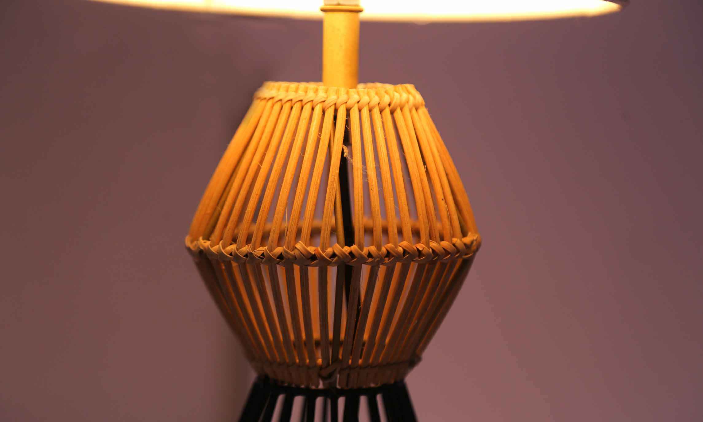 Mild Steel ,Cane and Conical linen shade