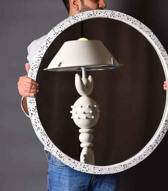 Terrazzo is here to stay and we are making the most of it! Black and white terrazzo in a mirror frame is almost an essential for us.