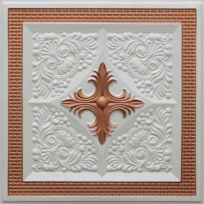 We use PVC Material for Ceiling Tiles and Wall Panels. It is an eco-friendly material as it can be recycled and reused. You can glue-up our tiles on any hard and plain surface using any Adhesive Glue. Our Decorative Tiles are also very lightweight so perfect for ceiling and wall application and our products are also anti - bacterial, water and stain resistant and washable.