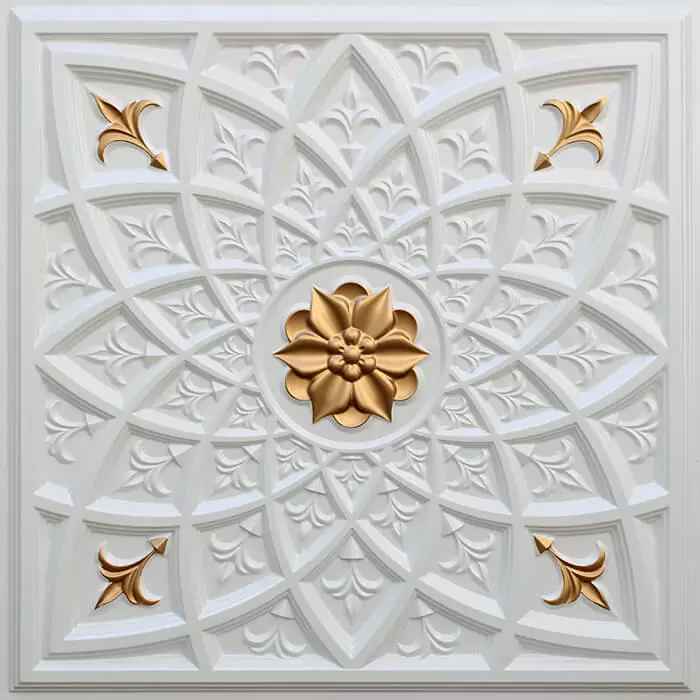 We use PVC Material for Ceiling Tiles and Wall Panels. It is an eco-friendly material as it can be recycled and reused. You can glue-up our tiles on any hard and plain surface using any Adhesive Glue. Our Decorative Tiles are also very lightweight so perfect for ceiling and wall application and our products are also anti - bacterial, water and stain resistant and washable.