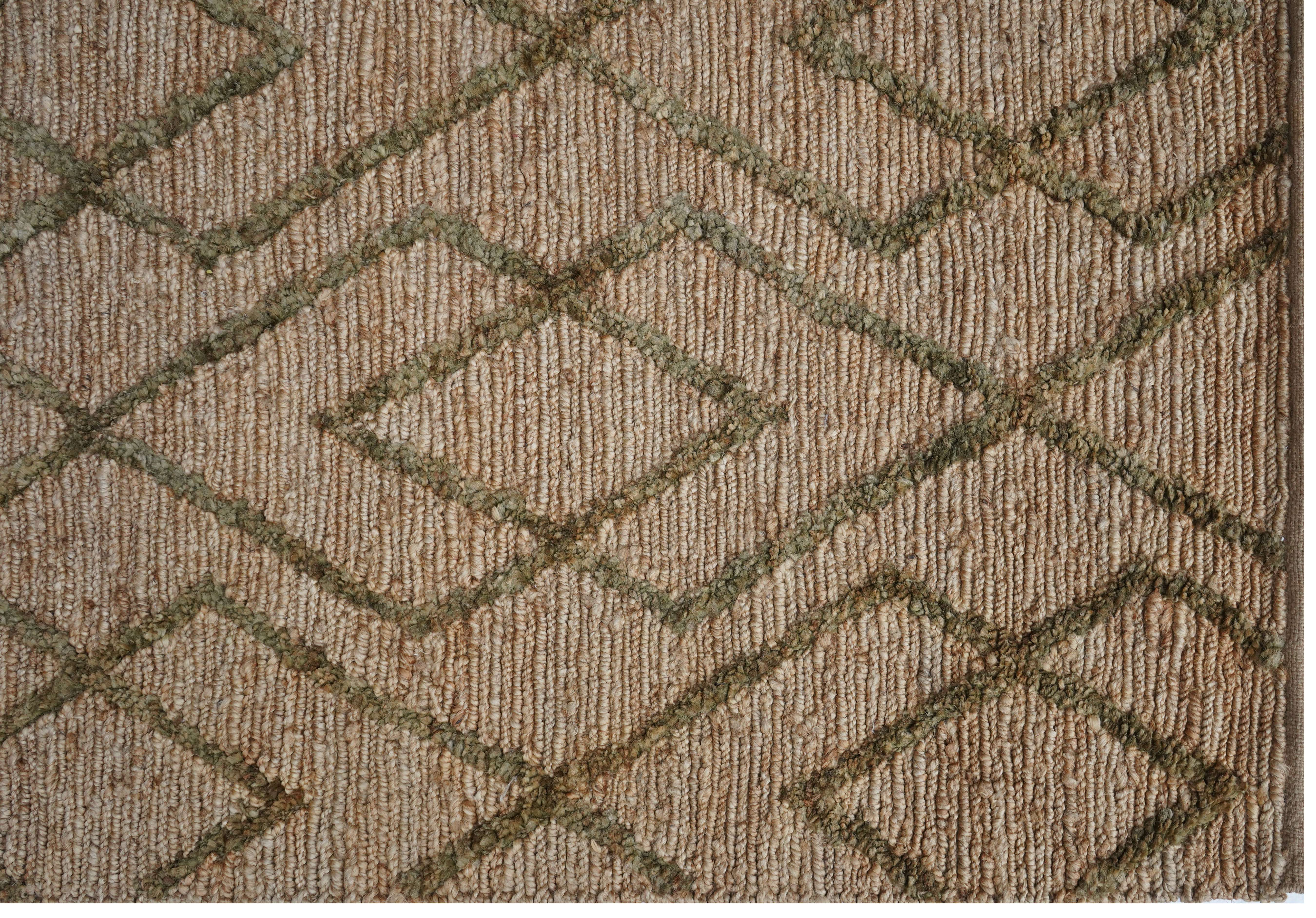 HAND MADE , HAND WOVEN , GEOMETRICAL , SUMAK WEAVE SAME LEVEL CUT PILE , CARPET A handwoven jute carpet can be a classic element to interior space with eco-freindly aesthetics. The natural soothing colors make your interiors more lively and enviornment freindly.