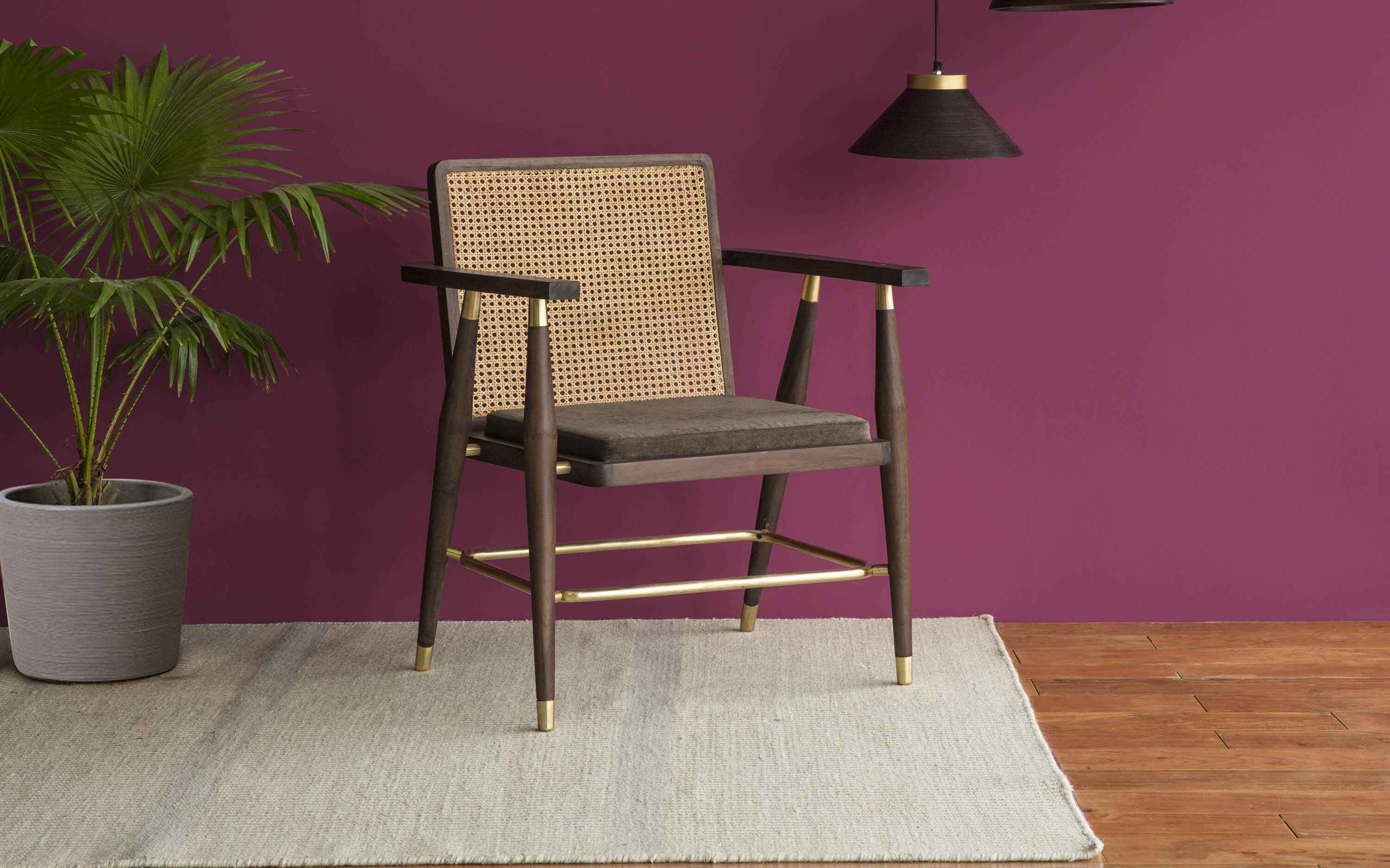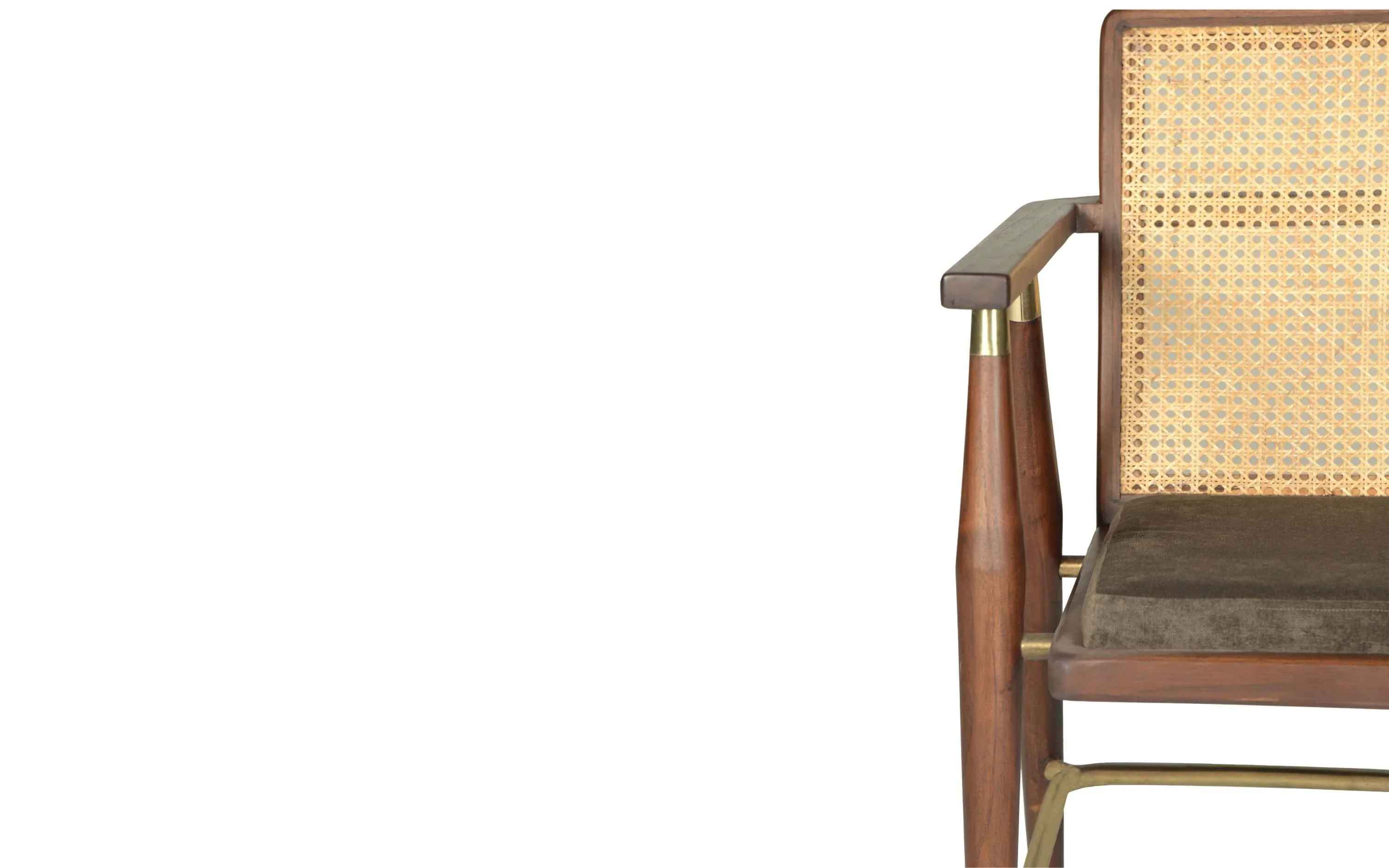 A classic design! The chair is designed to be used for various purposes, as per the user’s need. Adding a third element to the collection, cane seamlessly blends with wood and brass. The flexible nature of woven cane makes a comfortable and airy backrest. The sleek and tall turned legs, accentuating grains of teak are a visual treat. Brass accents used to join the seat and legs breaks the volume and gives the chair a delicate look. Brass is a metal that ages beautifully, adding character to the furniture as years go by.it's perfect for bedroom and living room. "Depending on your screen settings and resolution on your device there may be a slight variance in fabric color and wood polish of the image and actual product. Wood grains will vary from product to product in case of solid wood furniture."