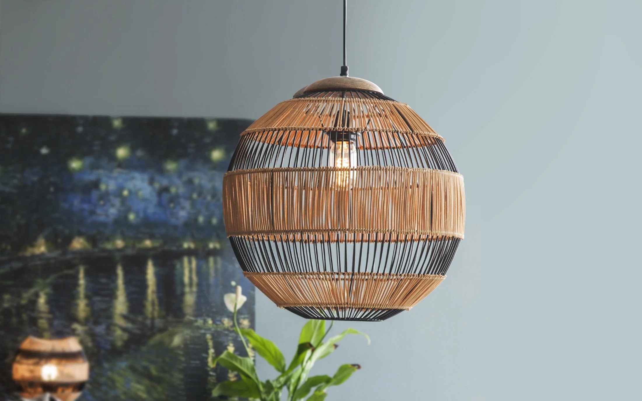 New Kyoto collection embodies all that makes the product great: stunning geometrics, solid lines, and contrast in solid black and natural cane/wood. In favor of thick strokes with alternating lines of metal wire and cane weave this collection creates an eye-catching and unique look. The New Kyoto Hanging Lamp is a beautiful and modern way to light up any room in your home. The lamp is made of iron and cane, with a black finish on the metal and natural cane. The lamp comes with hanging lights for the hall, living room, bedroom, dining table, wall, balcony, and home. The lamp also has a ceiling hanging light and a modern led hanging light. The New Kyoto Hanging Lamp is the perfect way to light up any room in your home. "Depending on your screen settings and resolution on your device there may be a slight variance in fabric color and wood polish of the image and actual product. Wood grains will vary from product to product in case of solid wood furniture."