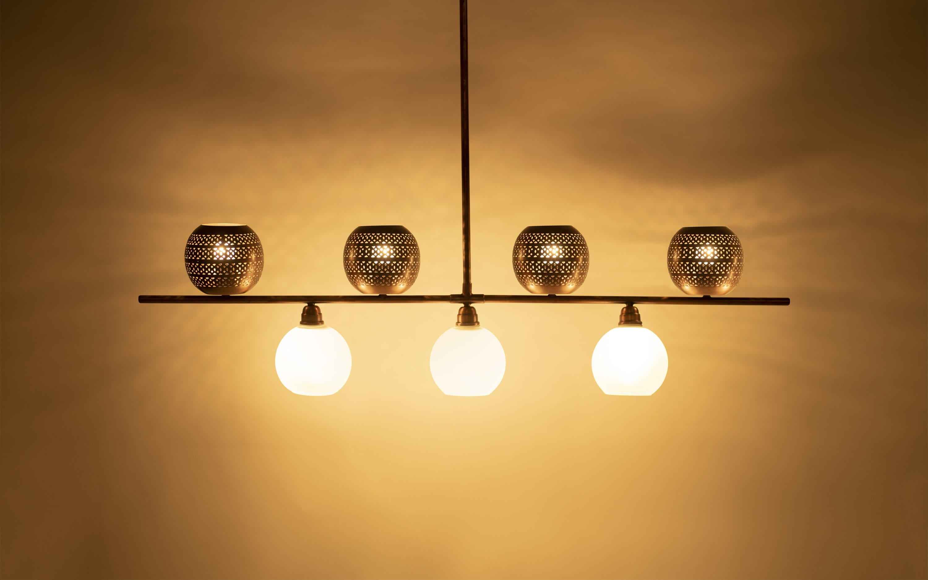 Soma Collection is a modern home decor lighting solution with traditional look with a craftsman style jali cut outs combined with round frosted glass. This is a perfect India Modern story.