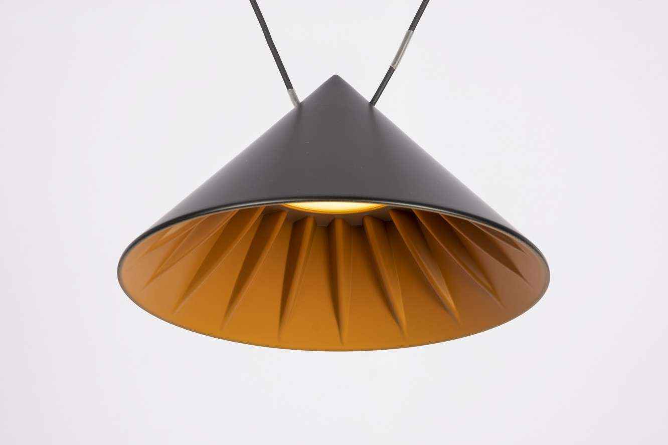 lluminate your kitchen, bedroom, living room with chic and stylish cone pendant lights. These unique silhouettes get their name from the cone shapes that start with a narrow base that gradually widens. They provide ambient, task, and accent lighting making them a universally adored fixture. Cone-shaped pendant lights are a dazzling display of form and function. Available in two colours - orange, black with orange.