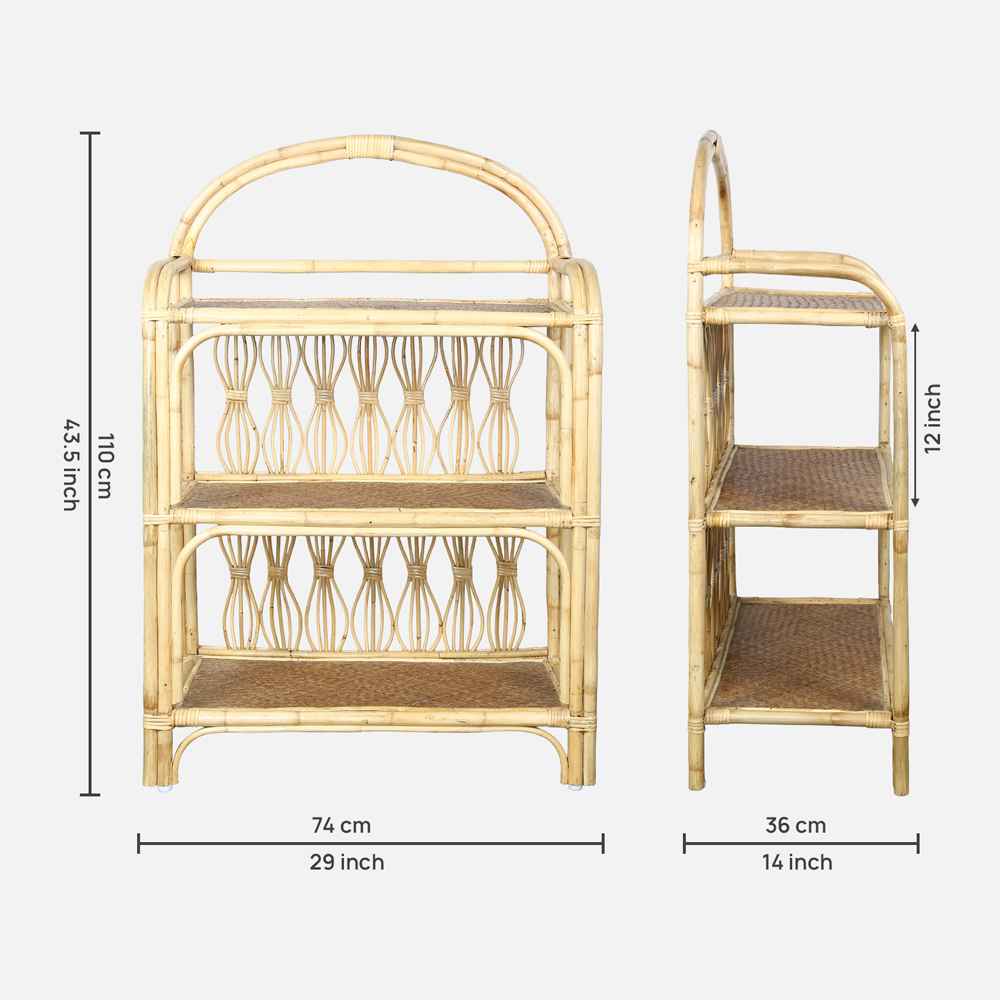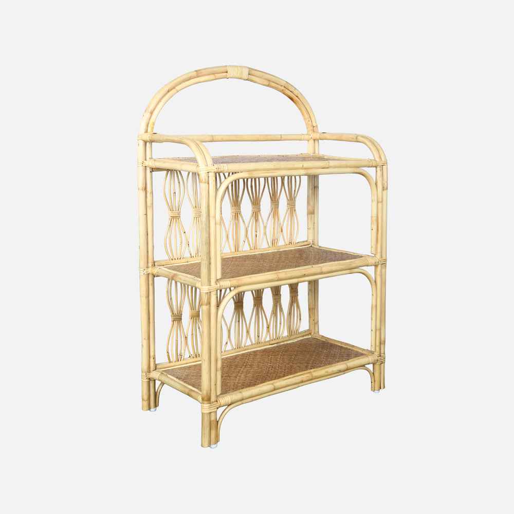 Introducing the Oasis Cane Shelf Unit – where exquisite craftsmanship meets practicality. This piece from Manaiya's collection is a true embodiment of both style and functionality. Crafted from natural cane and rattan, the Oasis Cane Shelf Unit features a captivating blend of organic materials. The rattan's alluring texture and the cane's sturdy construction make it a durable and eco-friendly choice for your home. Versatility is at the core of this shelf unit's design. Whether you're displaying your favourite books, showcasing décor, or organizing essentials, its multi-tiered shelves provide ample space for all your needs. At Manaiya's, we prioritize sustainable design, and the Oasis Cane Shelf Unit reflects that commitment. Made from renewable materials, it's a responsible choice that brings nature's beauty into your living space. Upgrade your home decor with the Oasis Cane Shelf Unit – a fusion of form, function, and sustainability. It's not just a piece of furniture, it's a statement of your discerning taste and environmental consciousness.