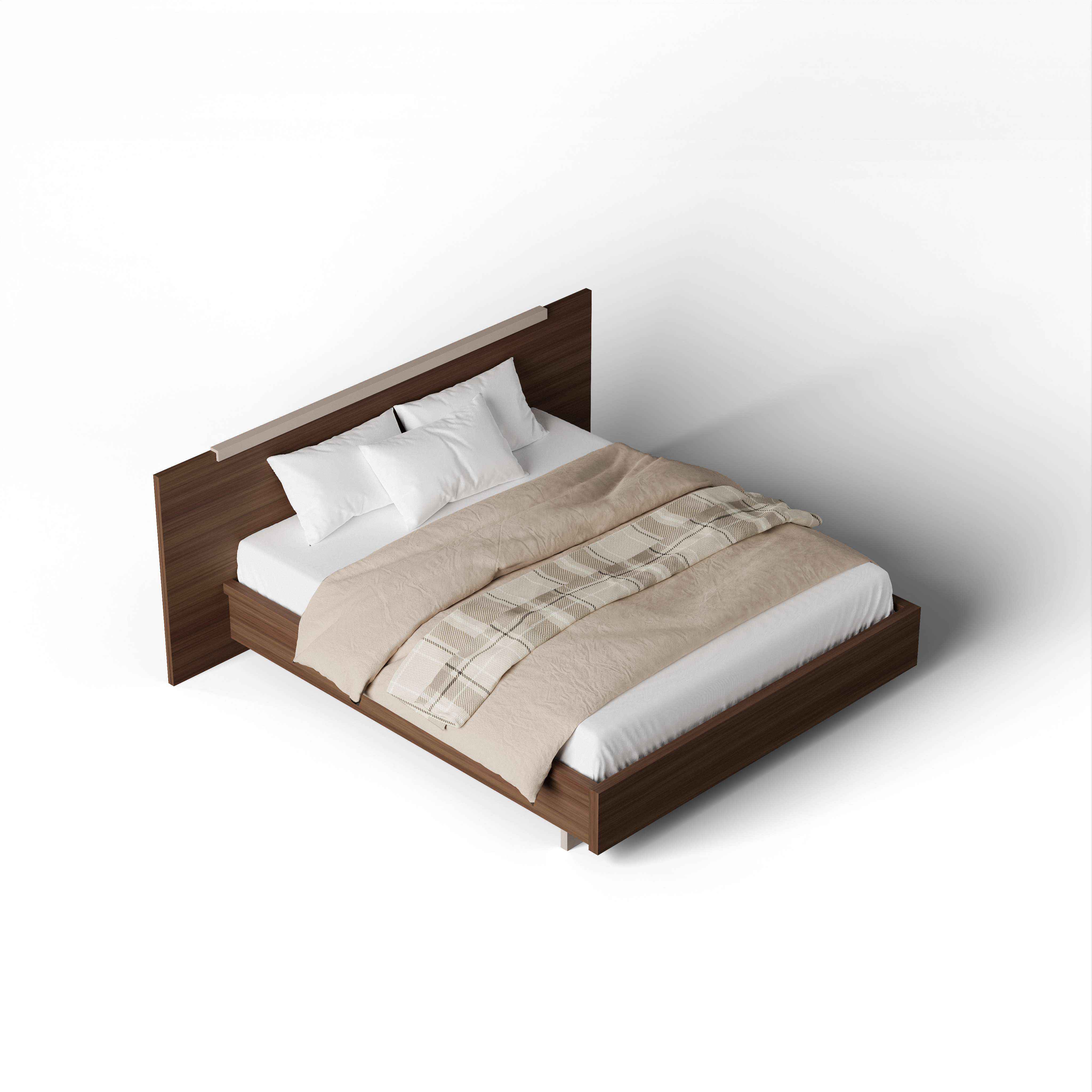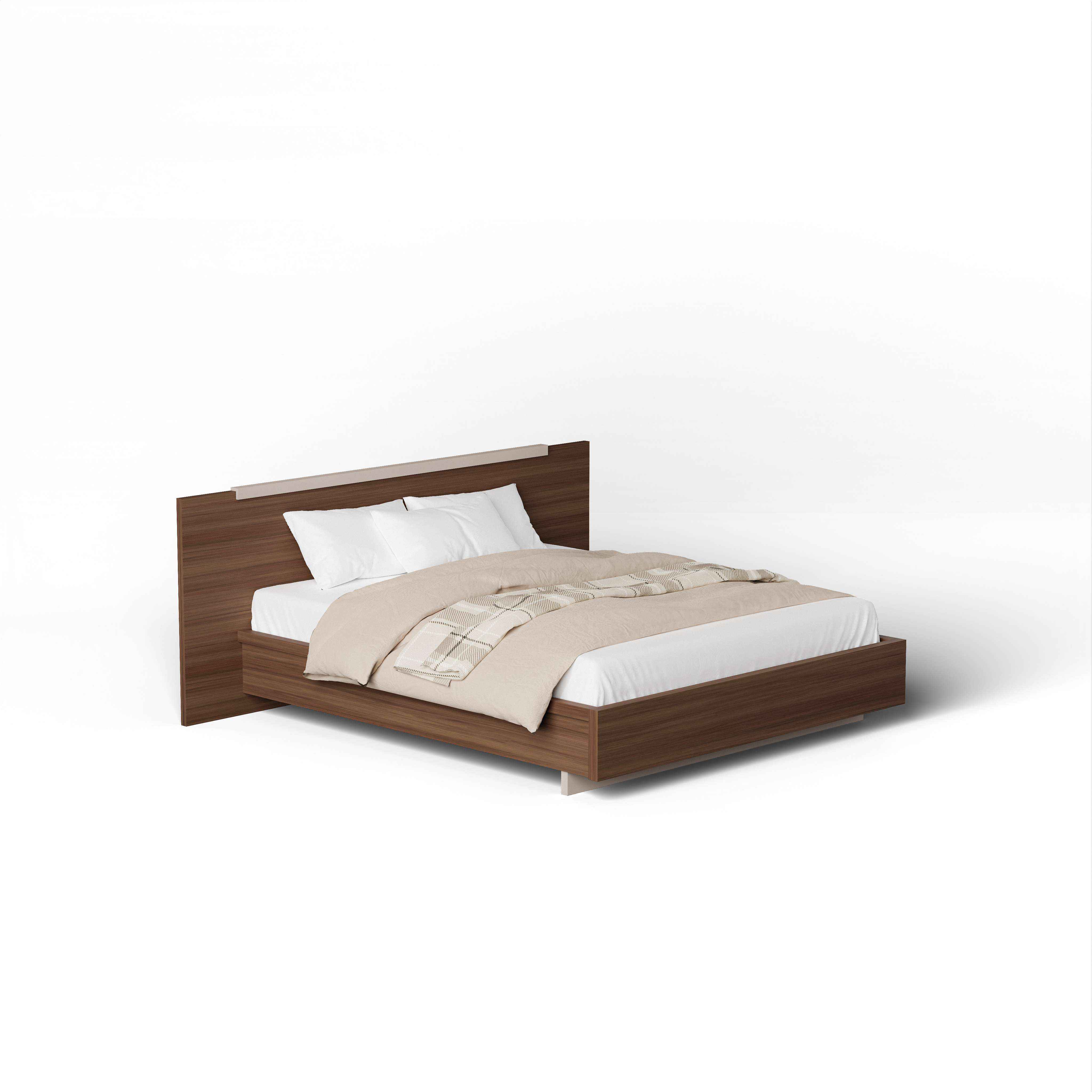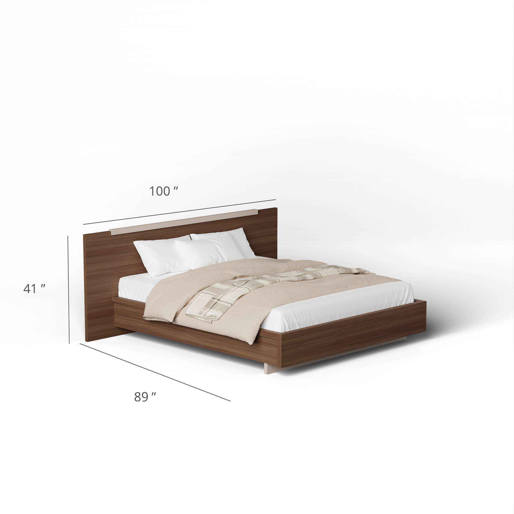 Classic Walnut Pre-Laminated MDF Headboard; Irish Cream Pre-Laminated MDF Mounting; Classic Walnut Pre-Laminated MDF Side-Rail; Classic Walnut Pre-Laminated MDF Footboard Rail; Classic Walnut Pre-Laminated MDF Headboard Rail; Frosty White Pre-Laminated MDF Bed Top Slat Support; Frosty White Pre-Laminated MDF Bed Bottom Slat Support; Irish Cream Pre-Laminated MDF Legs