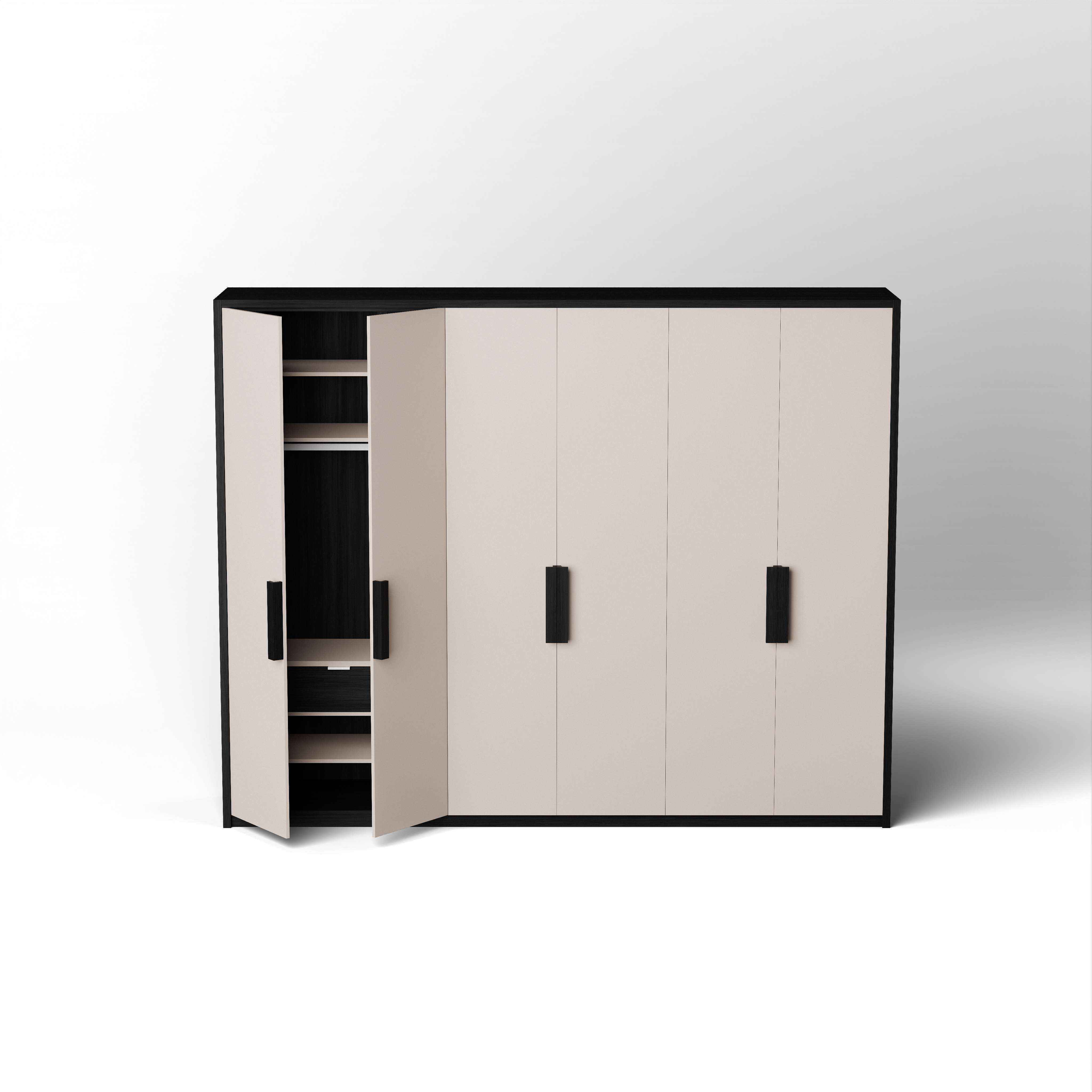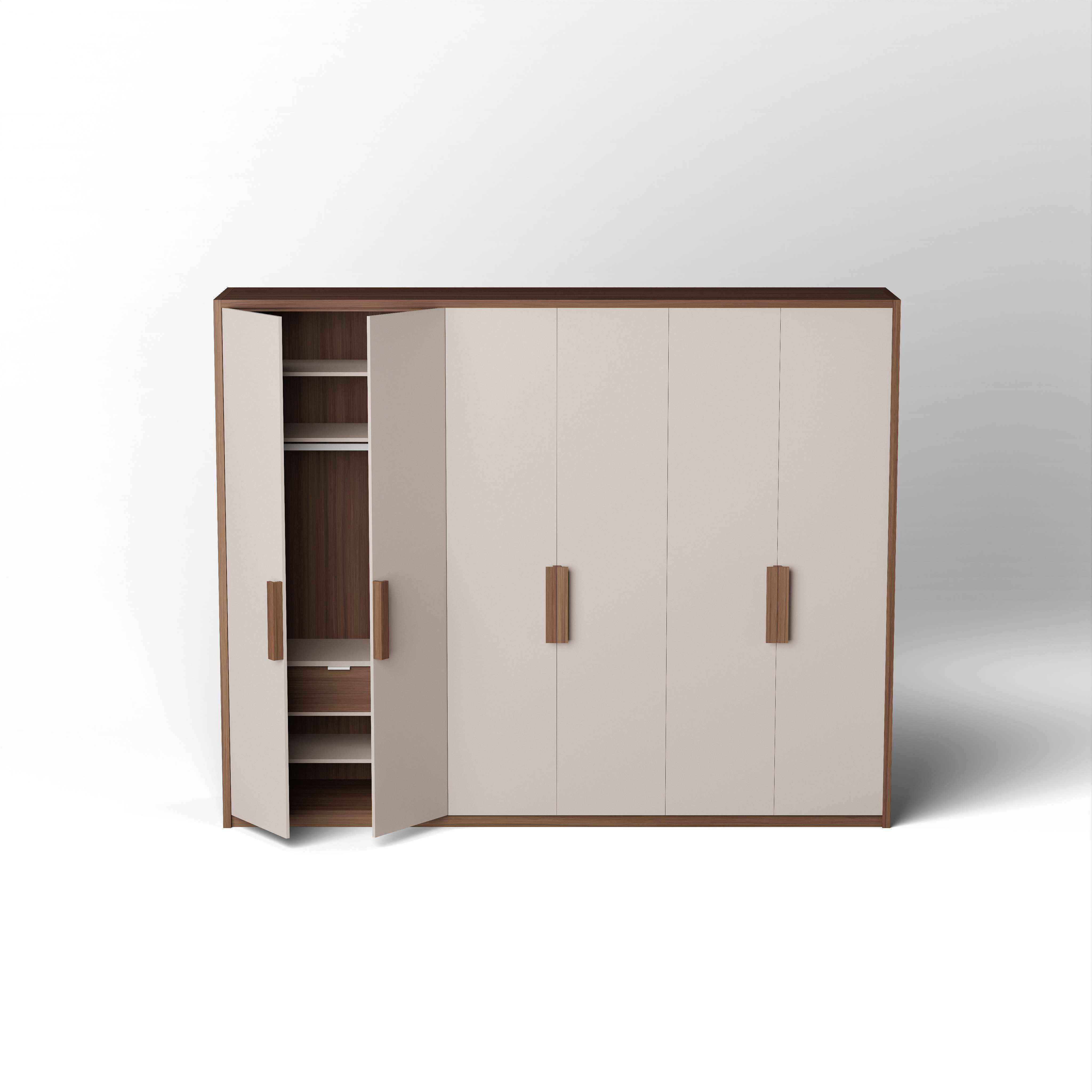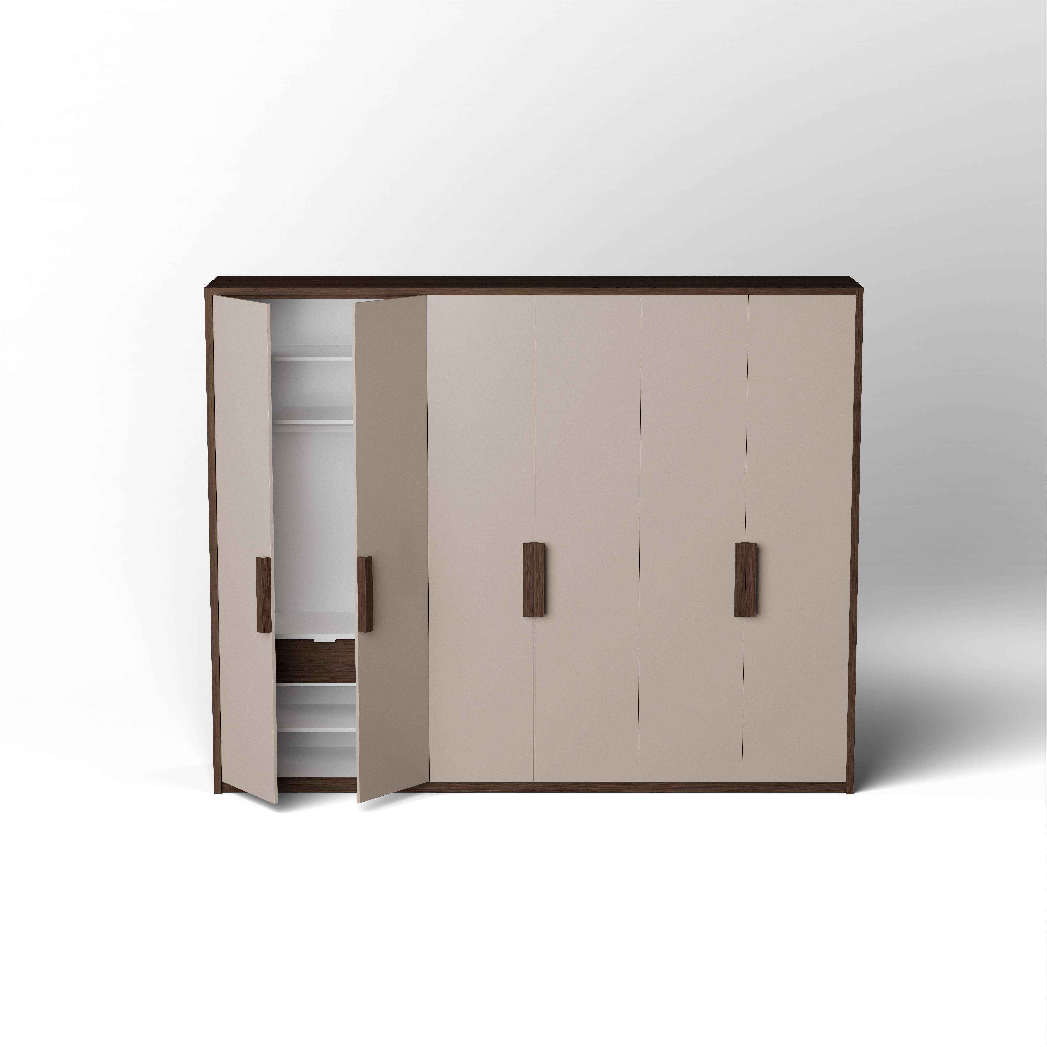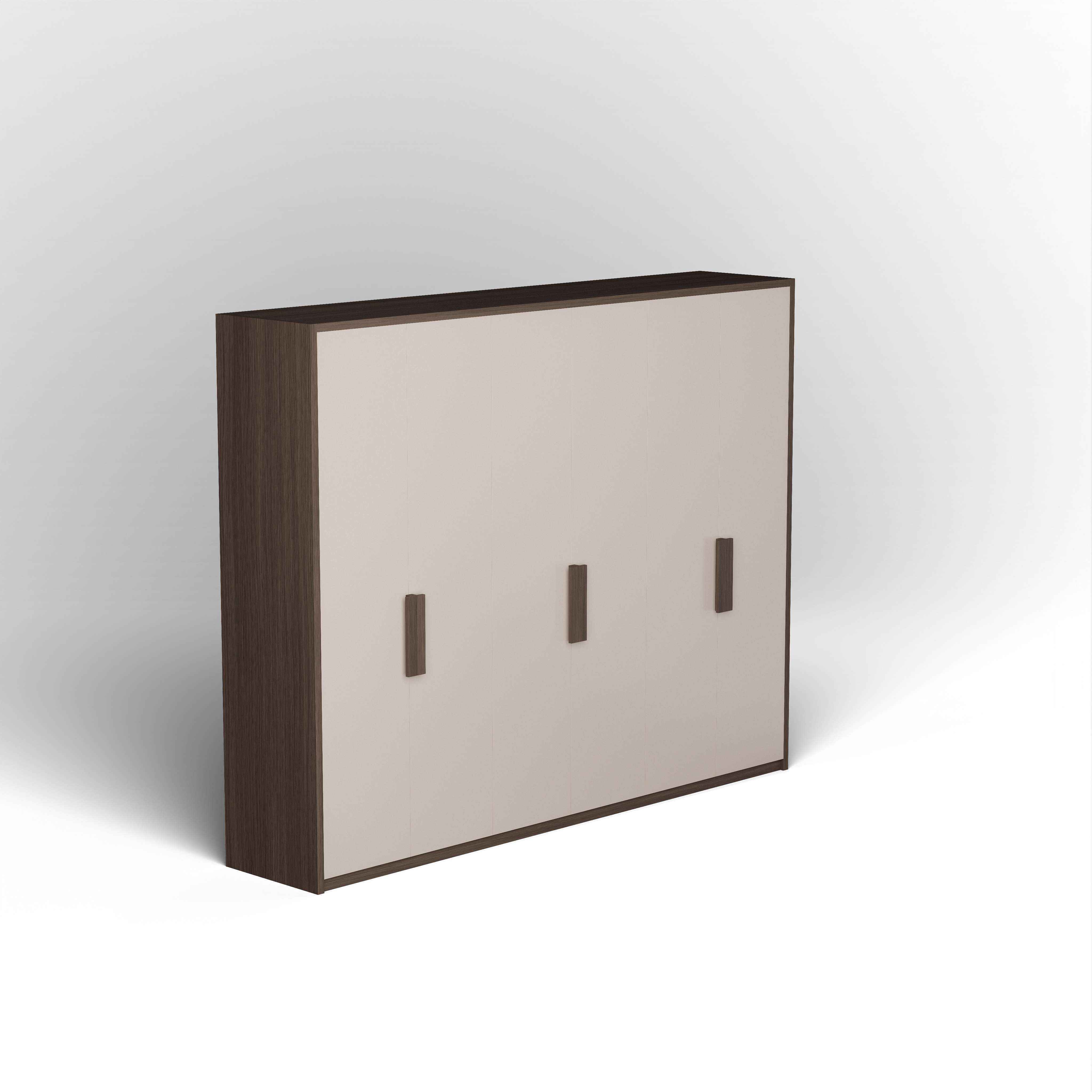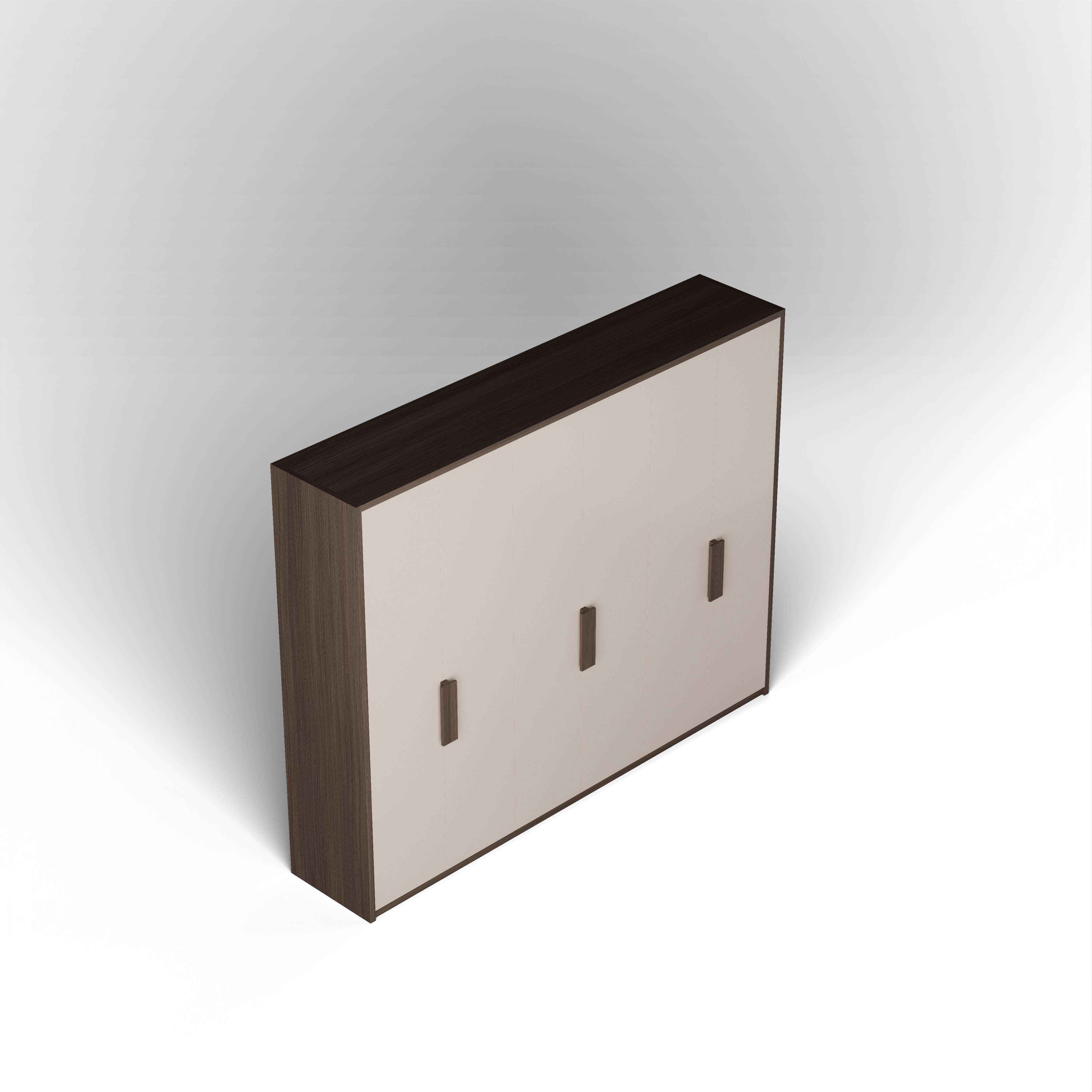 Coffee Post-Laminated Plywood Carcass; Irish Cream Pre-Laminated Plywood Internal Carcass; Sand Post-Laminated Plywood Shutter Exterior; Frosty White Post-Laminated Plywood Shutter Interior; Coffee Post-Laminated Plywood Drawer Fascia; Dark Grey Pre-Laminated Plywood Internal Drawer Box; Handle; Drawer Slide