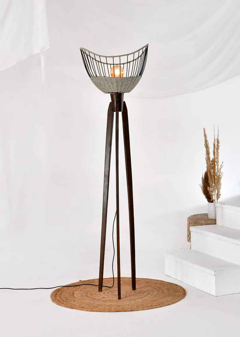 Introducing the "Oreo Floor Lamp," a true masterpiece handcrafted with white jute and adorned with a golden wire polish that exudes sophistication. The elegant blend of golder wire and brown polished wood creates a fantastic look that perfectly complements your living room.