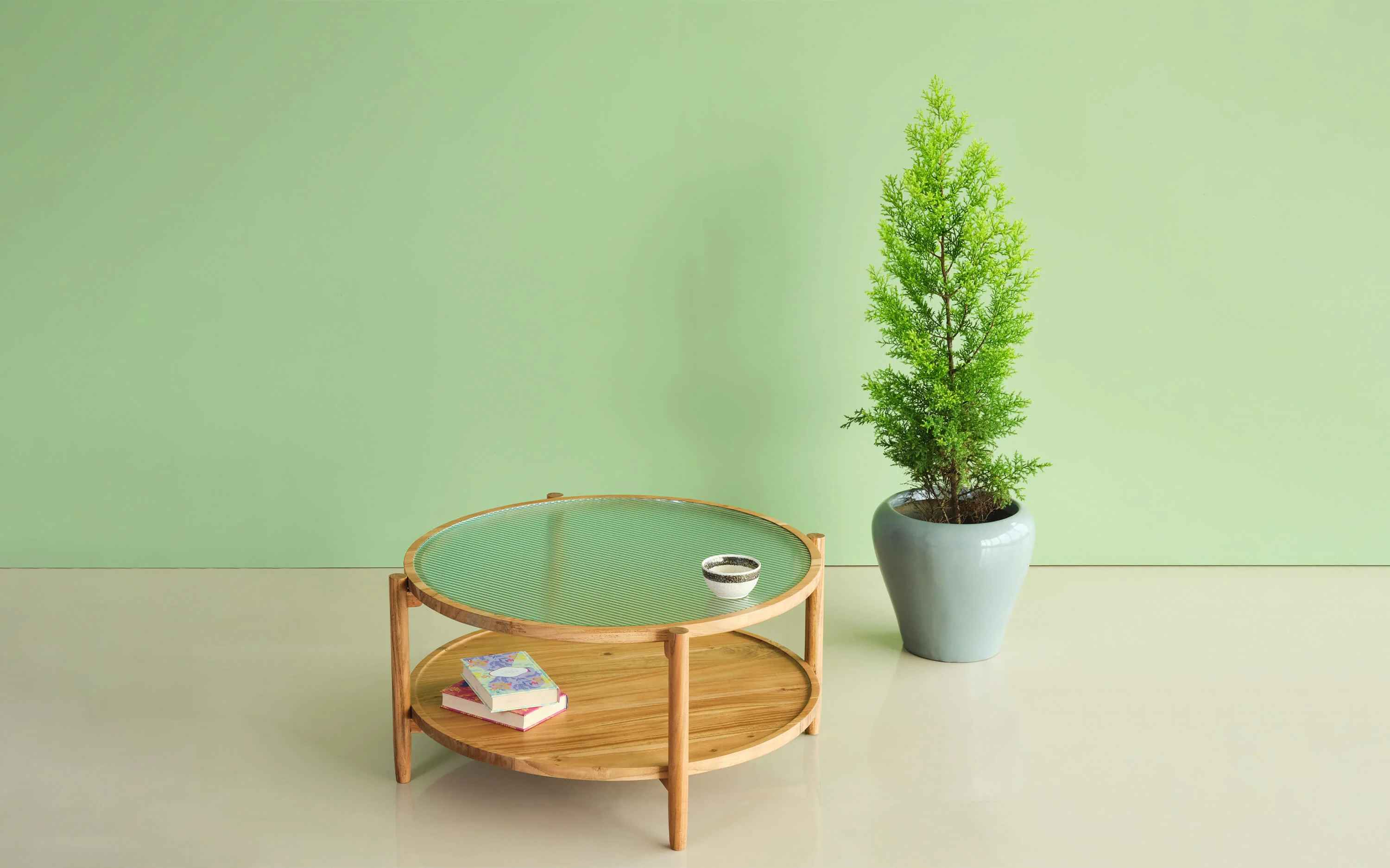 Paolo Venini, one of the leading figures in the production of Murano glass and an important contributor to twentieth-century design inspired our Paolo collection. His designs were strikingly simple, with the purity of outline set off against unusual combinations of colors worked into the glass. Our collection combines fluted glass and Acacia wood, the contrast of fragile transparency against the hard solid wood forms the highlight of the collection. It’s a perfect example of modern simplicity expressed in contemporary craft. "Depending on your screen settings and resolution on your device there may be a slight variance in fabric color and wood polish of the image and actual product. Wood grains will vary from product to product in case of solid wood furniture."