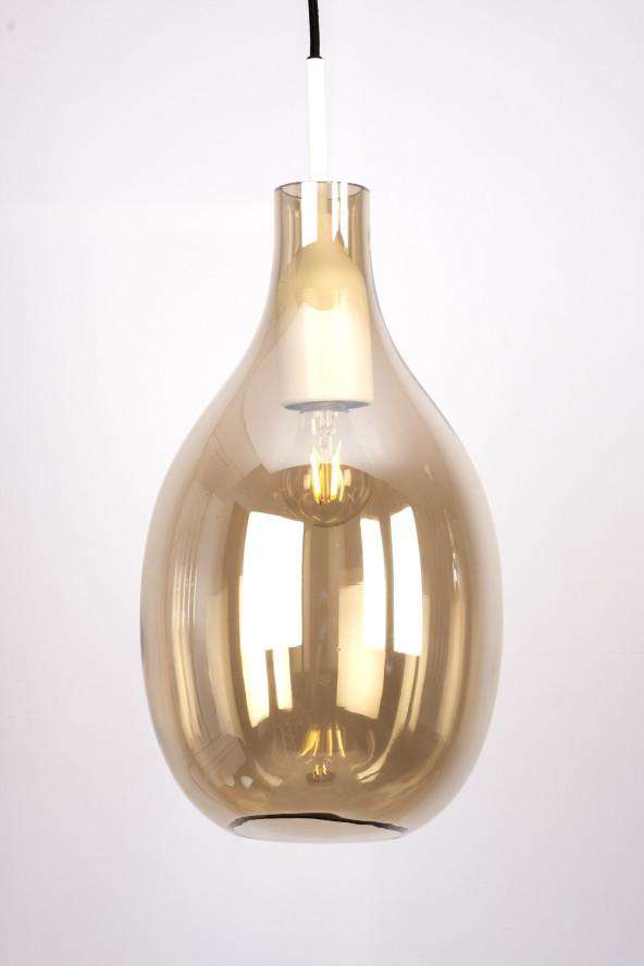 Hand-blown curved mini pendant features a distinctive gradient amber glass shade. Smaller mini pendant size brings a great lighting solution to a foyer, hallway or cozy space.