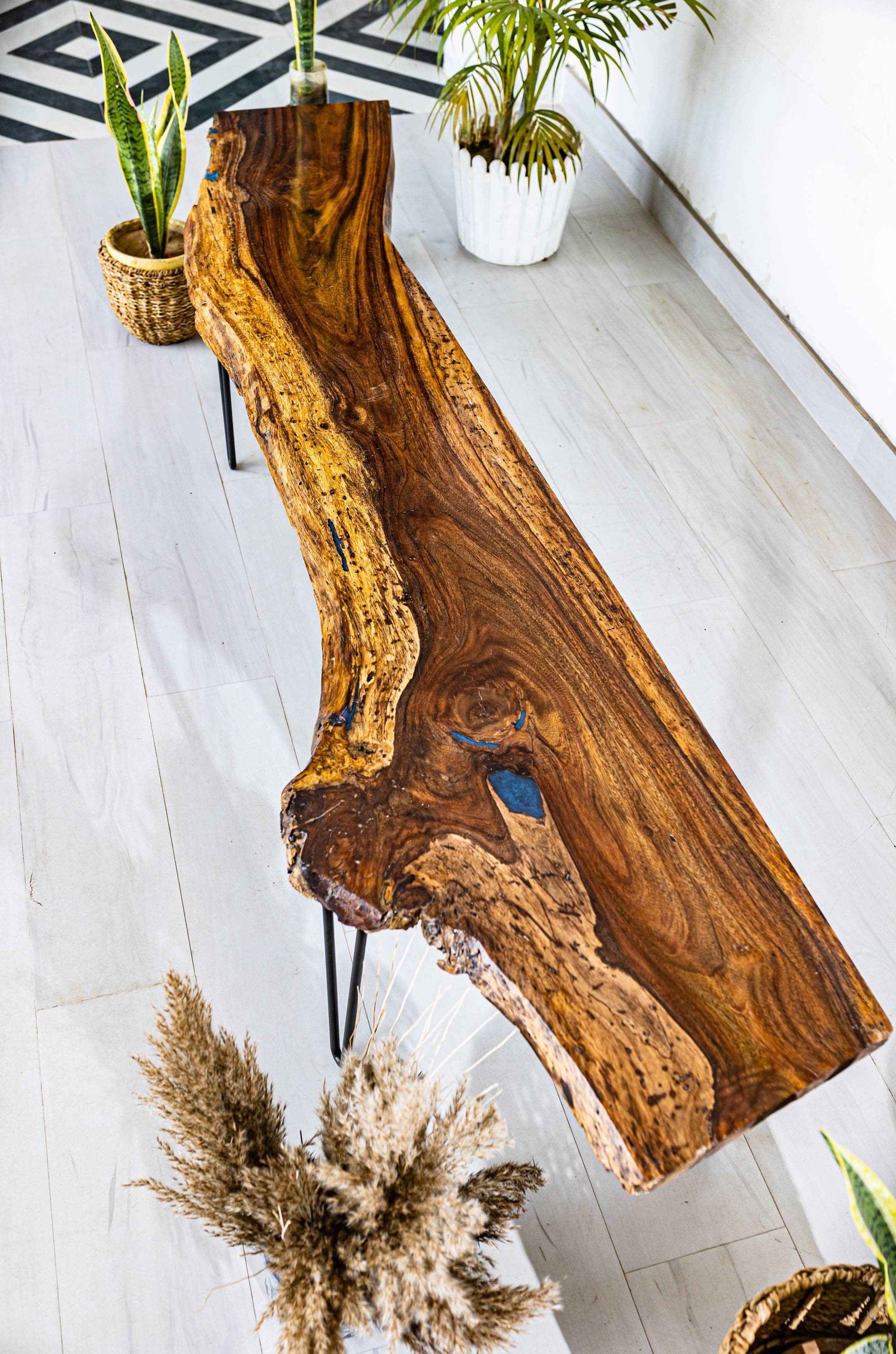 Created in the spirit of the Japanese aesthetic philosophy of wabi-sabi, Perfectly Imperfect is a perfect industrial upgrade to elevate contemporary spaces. Hairpin legs support the organic base made of Solid Sheesham Wood with Epoxy Resin. In addition, it features a medley of knots and imperfections, urging us to be alive to the beauty that resides in the humble bits of nature.