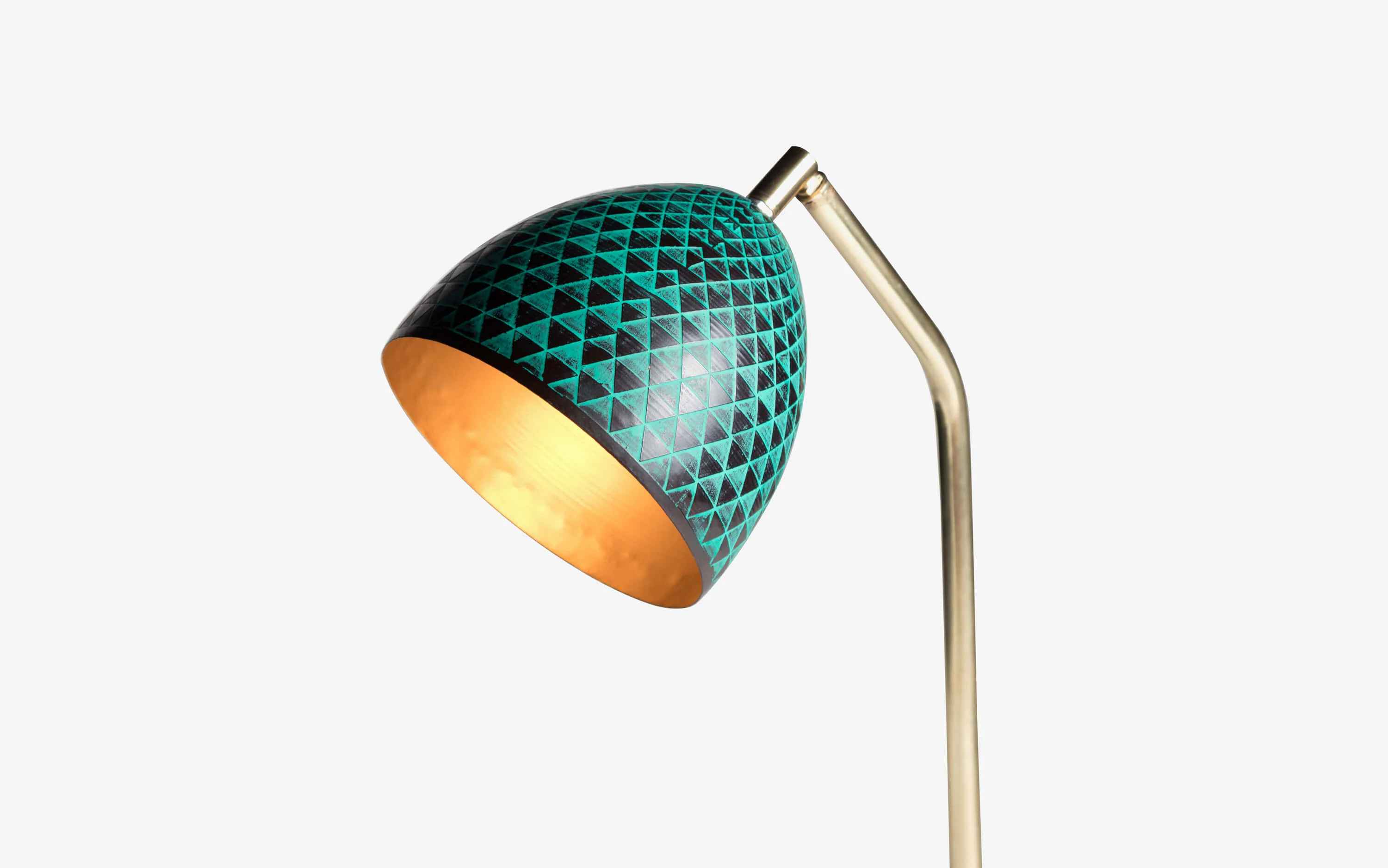 Inspired from the triangular tessellations on the façade of Esplanade, Singapore, the array of triangles forms the base of the Plato collection. The pattern looks beautiful from all angles and are done in contrasting Green and Black colour to highlight light and shade play over the building. Pair it with the matching table lamp, hanging lamp,cluster hanging lamp, mirror and wall decor for a coordinated look. "Depending on your screen settings and resolution on your device there may be a slight variance in fabric color and wood polish of the image and actual product. Wood grains will vary from product to product in case of solid wood furniture."