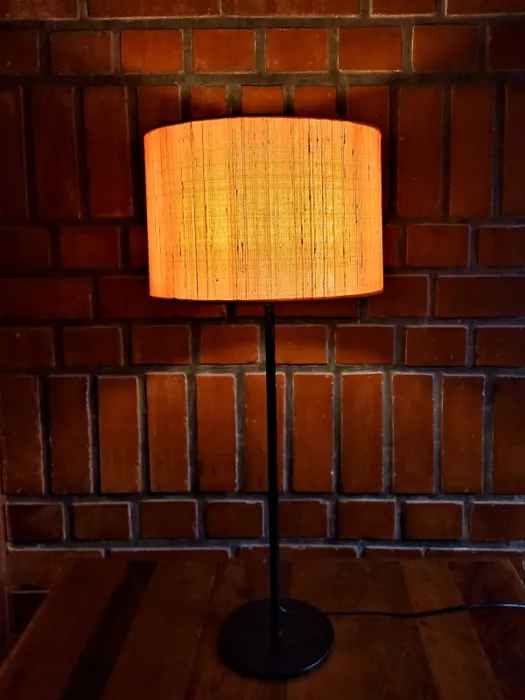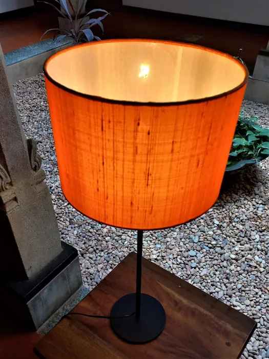 The Raw Silk Orange Floor Lamp is a beautifully designed light that will add a touch of elegance to any room. The fabric is natural fibre finished on a round shade. The shade is mounted on a high gloss powder coated iron stand with black finish. There is pre-treatment done on products to make them rust and dust free. The light adds a warmth and soft ambience to any room and can be used in a lounge, living room, bed room or study to add both illumination and atmosphere to your settings.