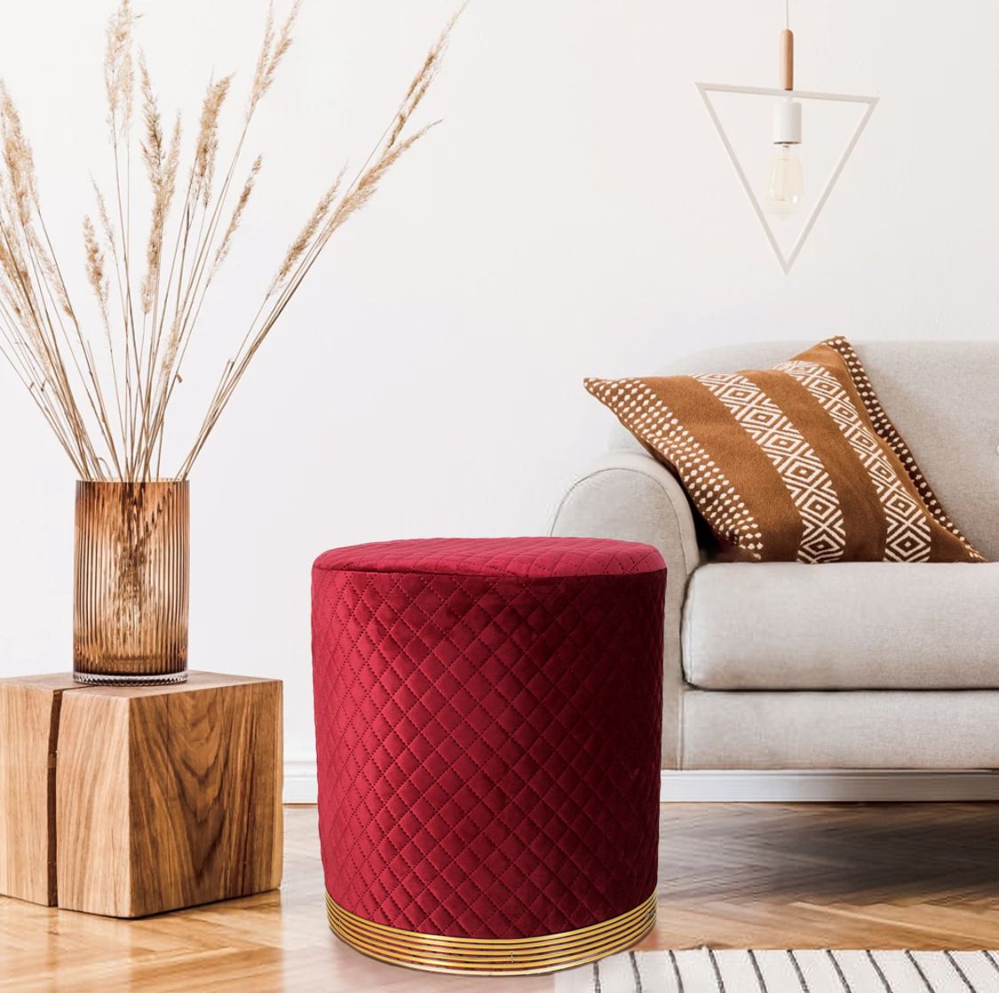 DownloadRed Gold Strip Wooden Pouf