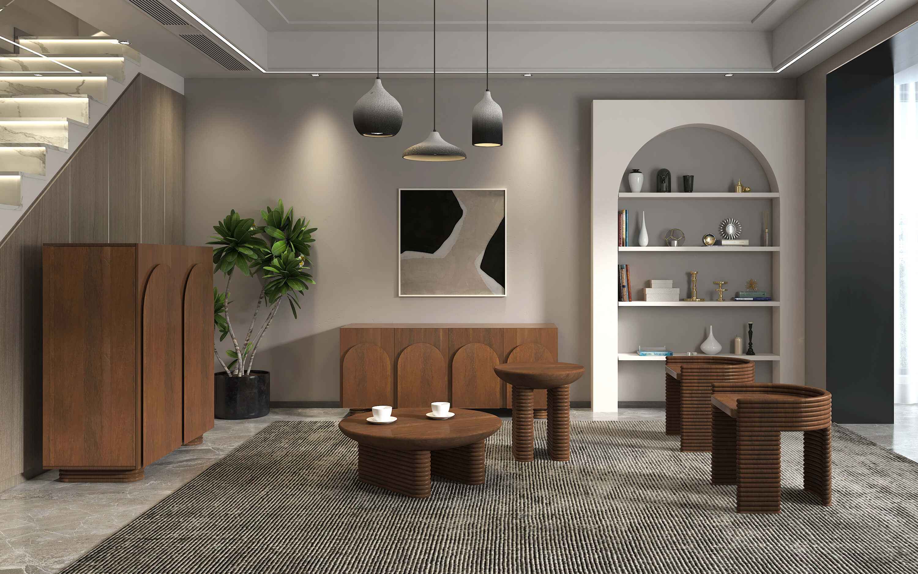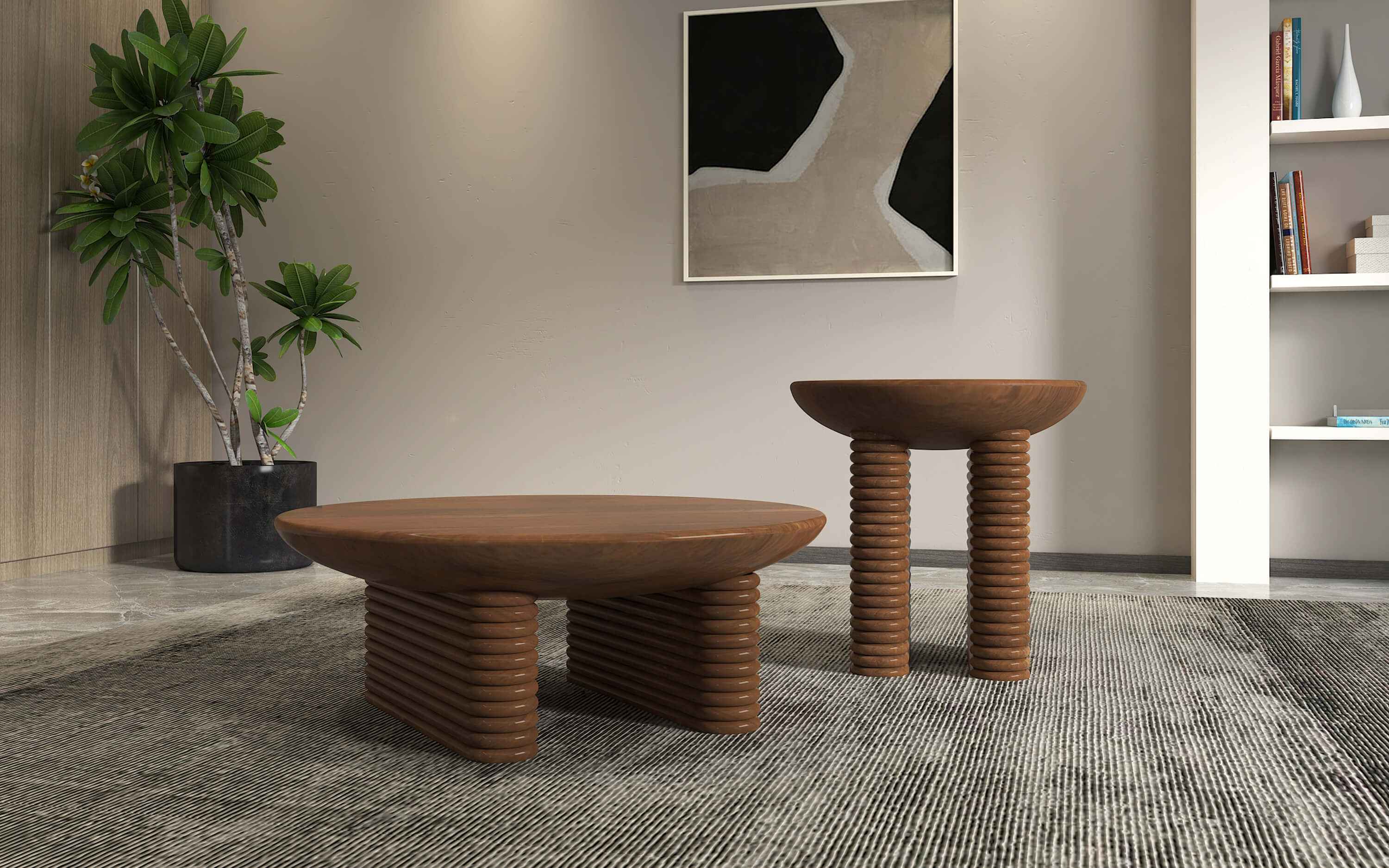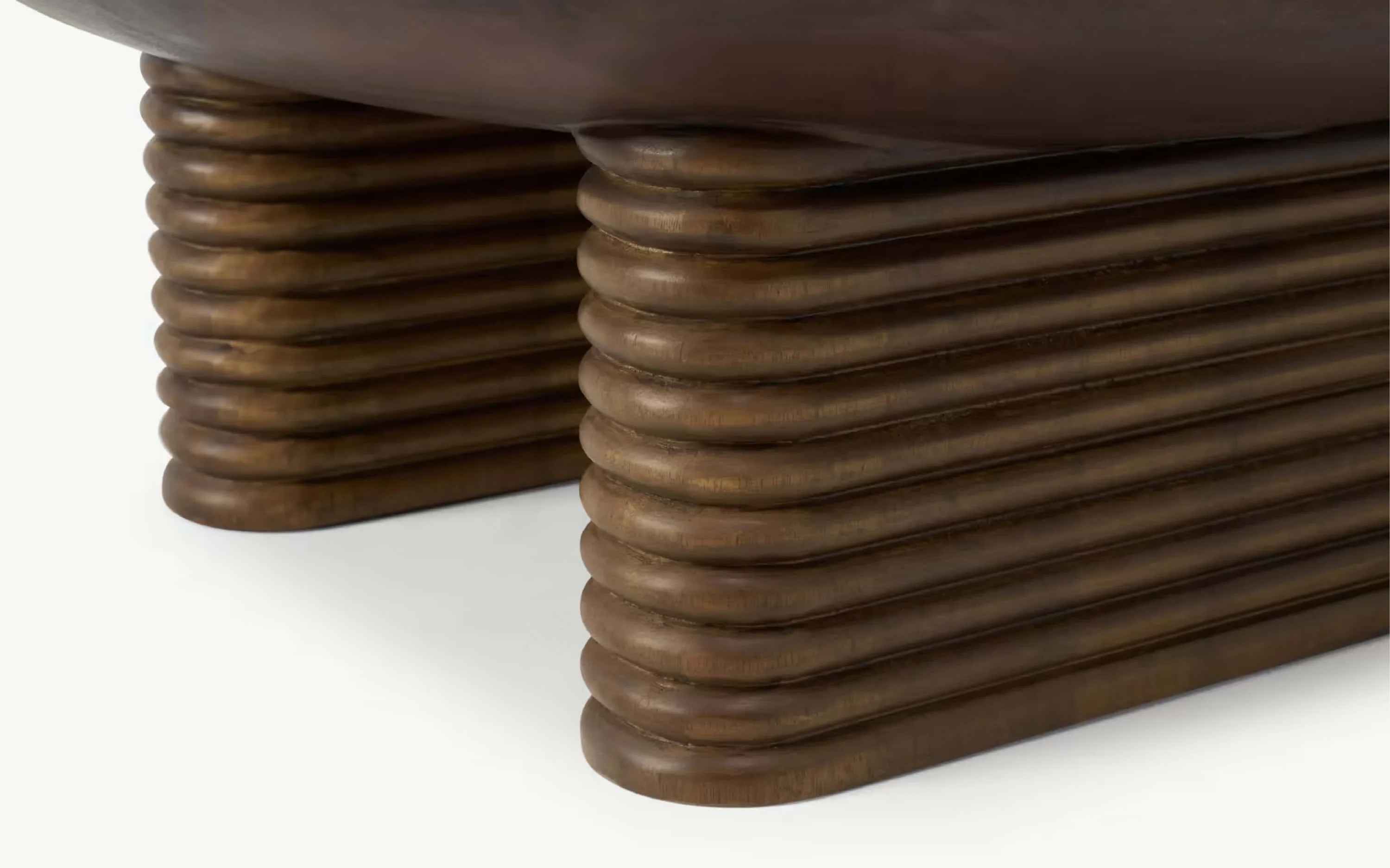 Featuring curved corners and ribbed detail our Ribbed collection inspired by Greek and Roman architecture has a distinct design language and monolithic personality. This collection has a typical mid- century vibe which is the ongoing interior trend, made in Mango wood in dark finish the ribbed convex detail in a less than perfect circle also adds an illusion of extra height to the product. "Depending on your screen settings and resolution on your device there may be a slight variance in fabric color and wood polish of the image and actual product. Wood grains will vary from product to product in case of solid wood furniture."