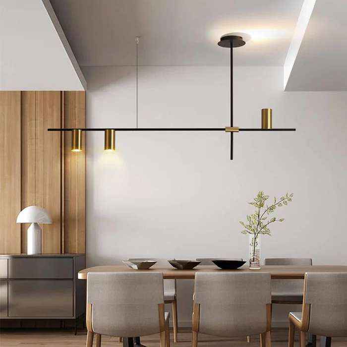 A suspension light featuring three directional spotlights mounted on a rail to effortlessly highlight any contemporary space. Perfect for a kitchen , Dining Room , Office , Restaurants , Bar etc