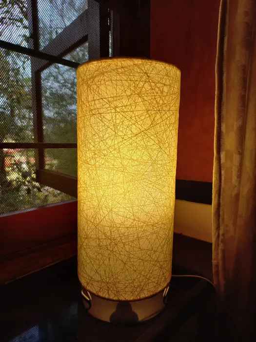 Shade Material: Off-White Poplin Fabric with silk cotton thread finish Stand Material: White powder coated MS frame