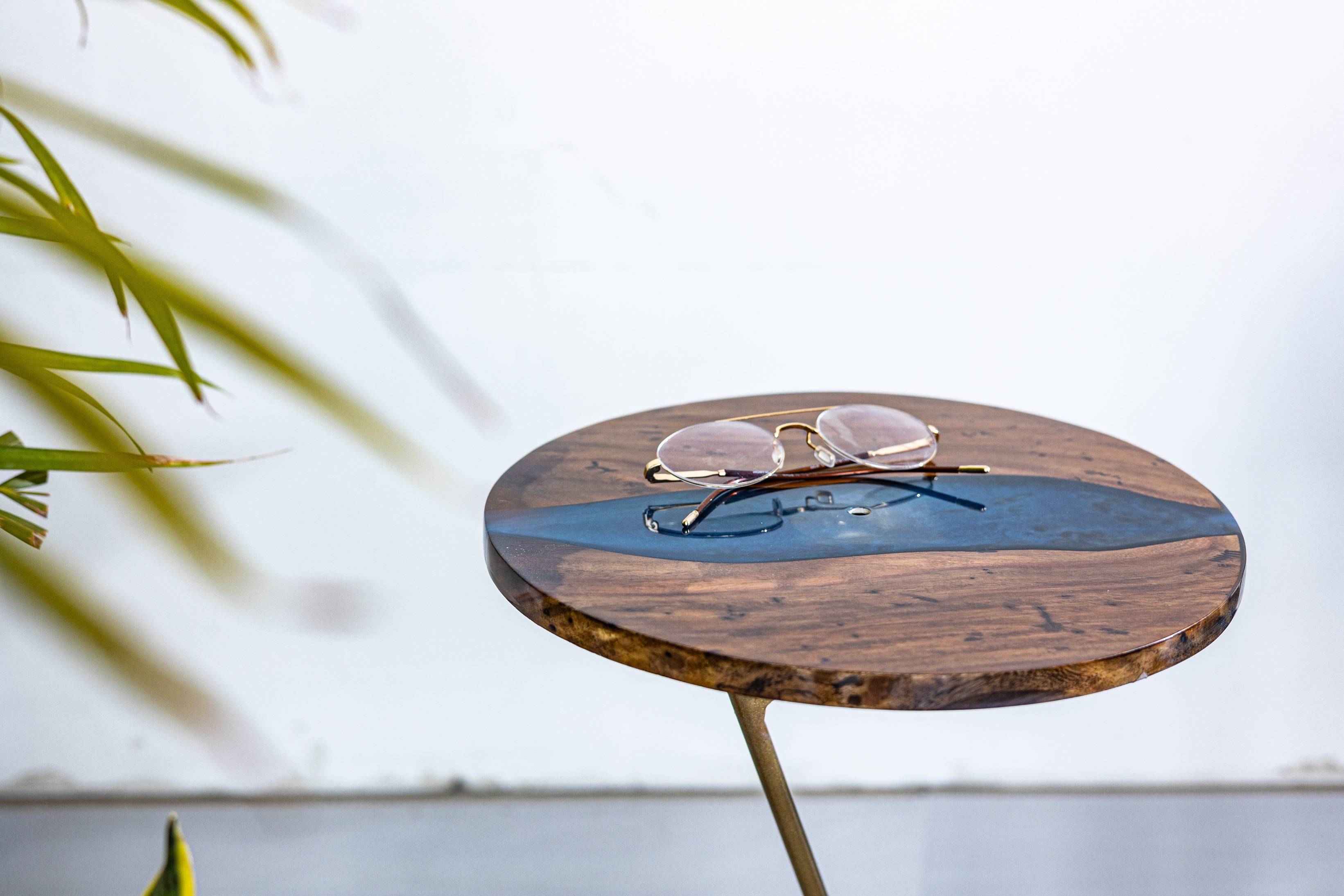 Inspired by the colourful world of the popular Korean TV series, the Squid Games end table showcases a playful, handmade aesthetic. Created by seasoned woodworkers in our in-house manufacturing facility using Solid Acacia Teak and Epoxy Resin in Royal Blue, this end table will radiate joyful energy in your interior with its bold expression.
