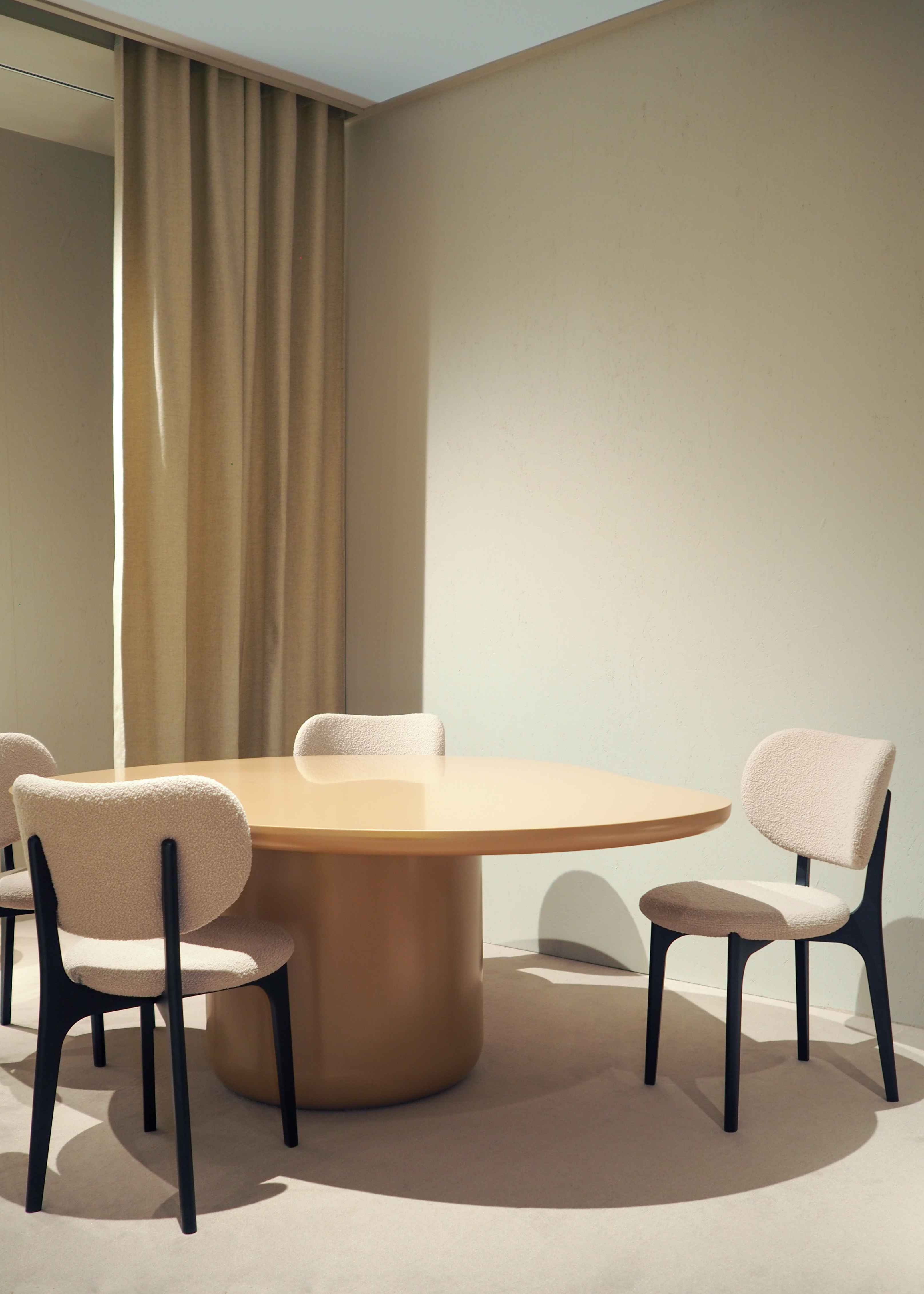 Curved plywood structure with two layers of non-deformable foam, lined and upholstered in any of our range of fabrics or customers own material