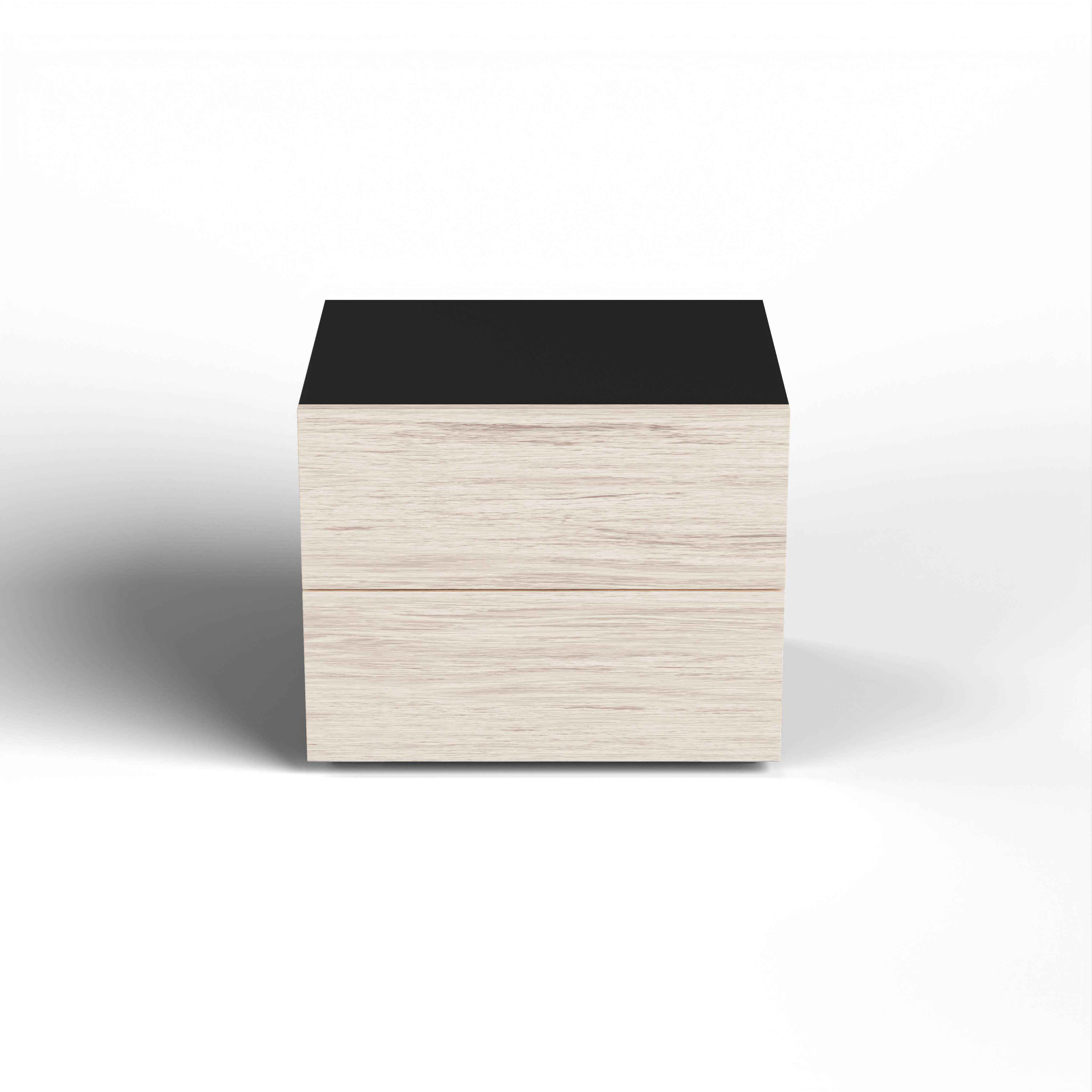 Dark Grey Post-Laminated Plywood Carcass; White Oak Post-Laminated Plywood Drawer Fascia