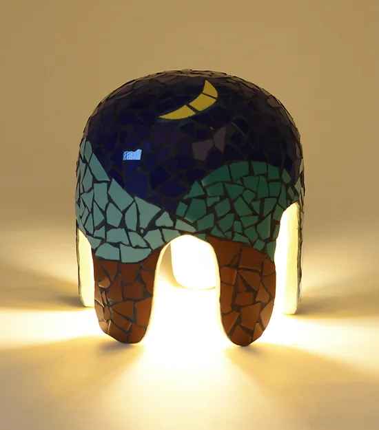 The Arte Collection encapsulates a wide range of upcoming products influenced by Master Artists and their art. ‘Shore’ is a limited-edition mosaic table lamp from this handmade series responding to American Artist Milton Avery’s Expressionist artworks. Inspired by him, our “Resplendent Land and Sky’, a flat style landscape reproduced on the lamp captures the fragile momentary beauty from dusk to night in the Island City of Mumbai. The unique five-arched form with its sculpturesque qualities, handcrafted with recycled tiles, brings in the beauty of that ephemeral moment and brightens a space even when not illuminated.