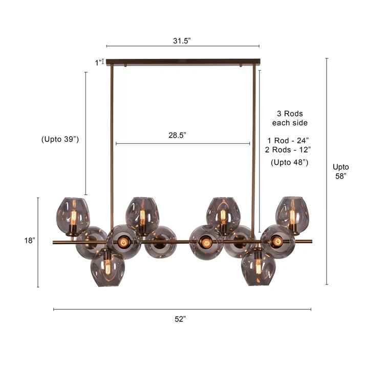 Height: Upto 58"; Length: 52"; Width: 18" (inches)