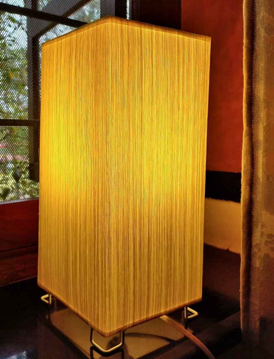 The Ivory table lamp is made from silk cotton fabric and naturally dyed. The shade is mounted on a powder coated stand with white finish. The light adds a soft ambience to any room and can be used in a lounge, living room, bed room or study to add both illumination and atmosphere to your settings.