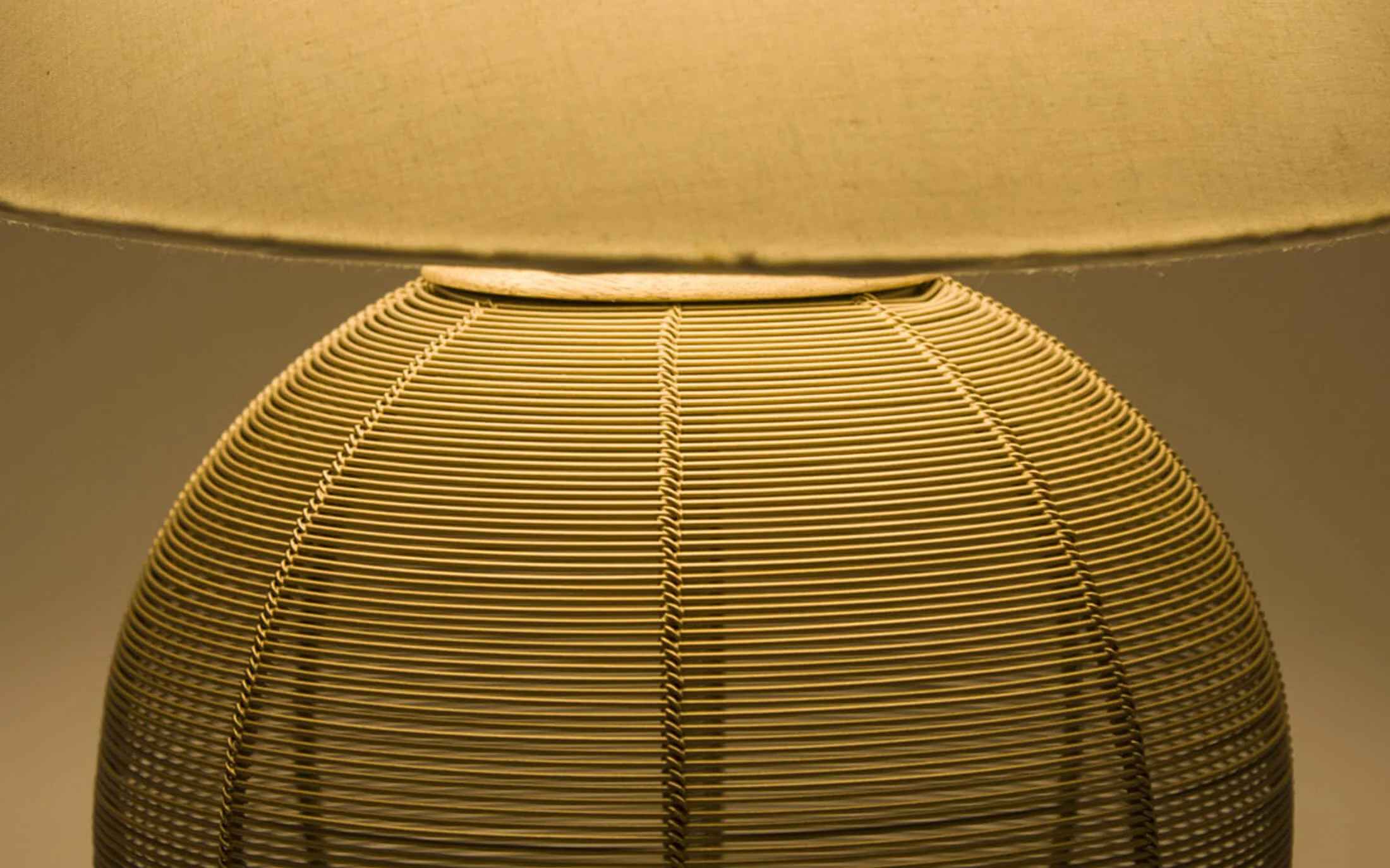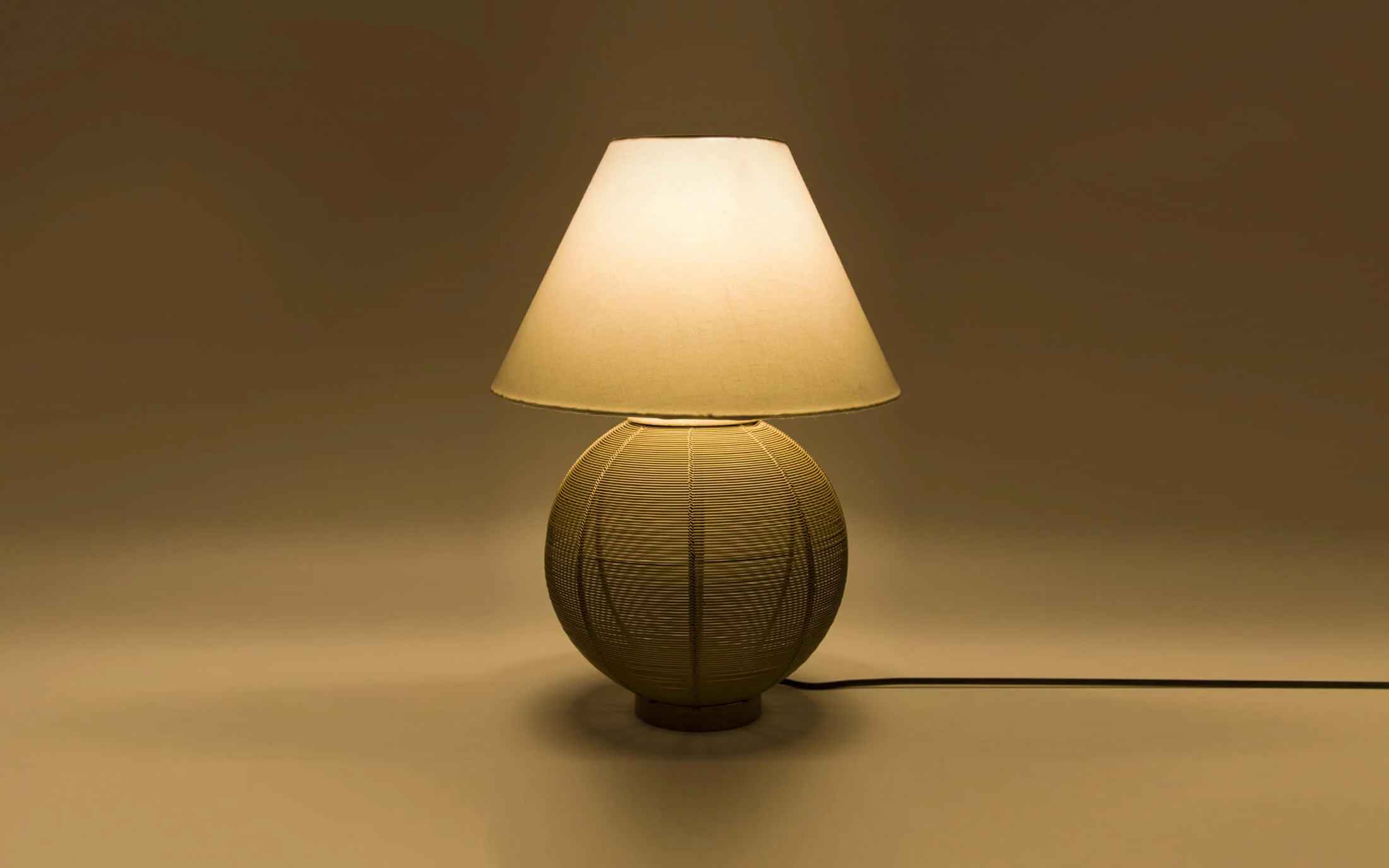 Intricately woven from golden metal wires, our unique, parasol-shaped lightshade is simple and classic. The tri- leg mango wood stand gives a perfect look for your lounge or dining room setting. "Depending on your screen settings and resolution on your device there may be a slight variance in fabric color and wood polish of the image and actual product. Wood grains will vary from product to product in case of solid wood furniture."