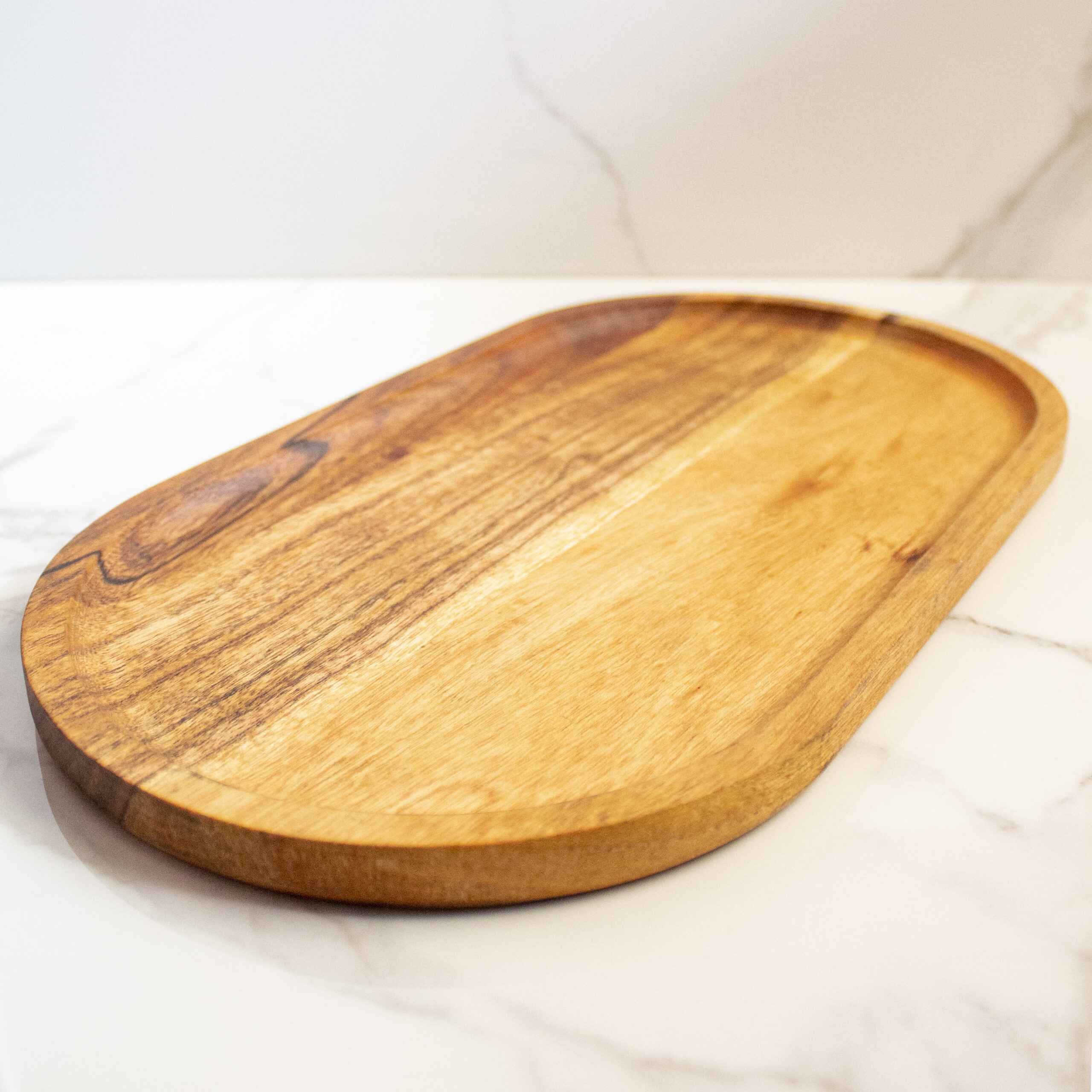 Minimal is the new luxe. Serve in style with our elliptical tray! For all your meals, this tray works and blends perfectly. Made out of natural wood, this sustainable serveware will be a super product!