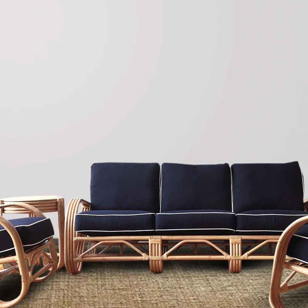 Our Pretzel range is crafted by hand from natural rattan and features an angled-seat profile that enhances the relaxed vibe. It's a versatile option that can elevate any decor style, whether you prefer a casual, coastal, scandi, or modern look. The Pretzel 3 Seater lounge can also be used outdoors under a roof with no direct exposure to UV and moisture. In terms of fabrics, you have the flexibility to choose from different ranges depending on your intended use. High Performance fabrics are designed for indoor and outdoor use, and are durable, colorfast, and stain-resistant. They come in wrap-over style covers and premium support foams, which may feel firmer initially, but soften with age. Wrap-over covers do not have piping and have seams running along the sides for a neat finish. Meanwhile, Linen fabrics are better suited for indoor use only and come with self-piping (also known as box piping) around all sides of the cushions. Our Linen range also includes new SuperSoft seat inserts, which offer added comfort.